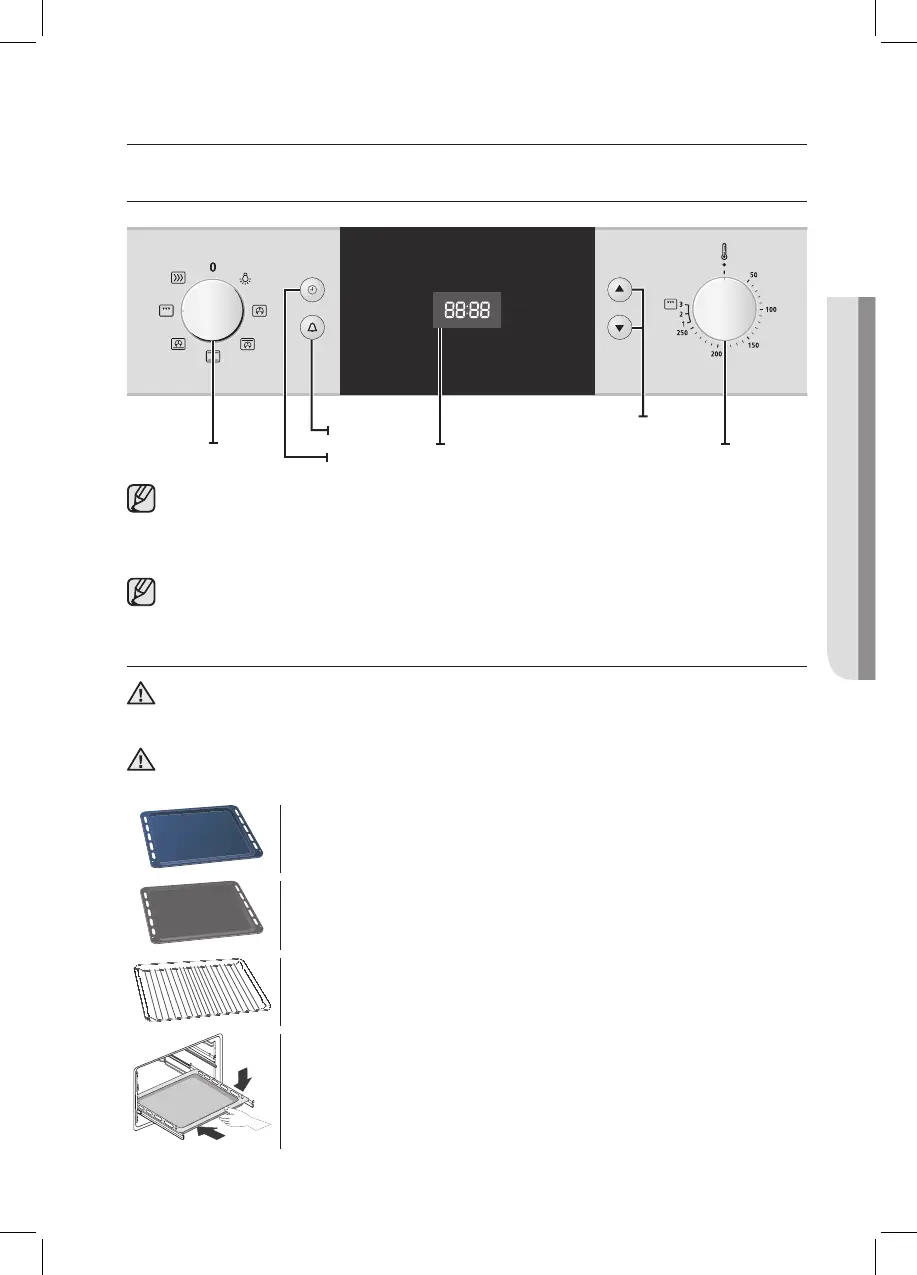 • To insert the grid, baking or roasting pan, first slide out the telescopic