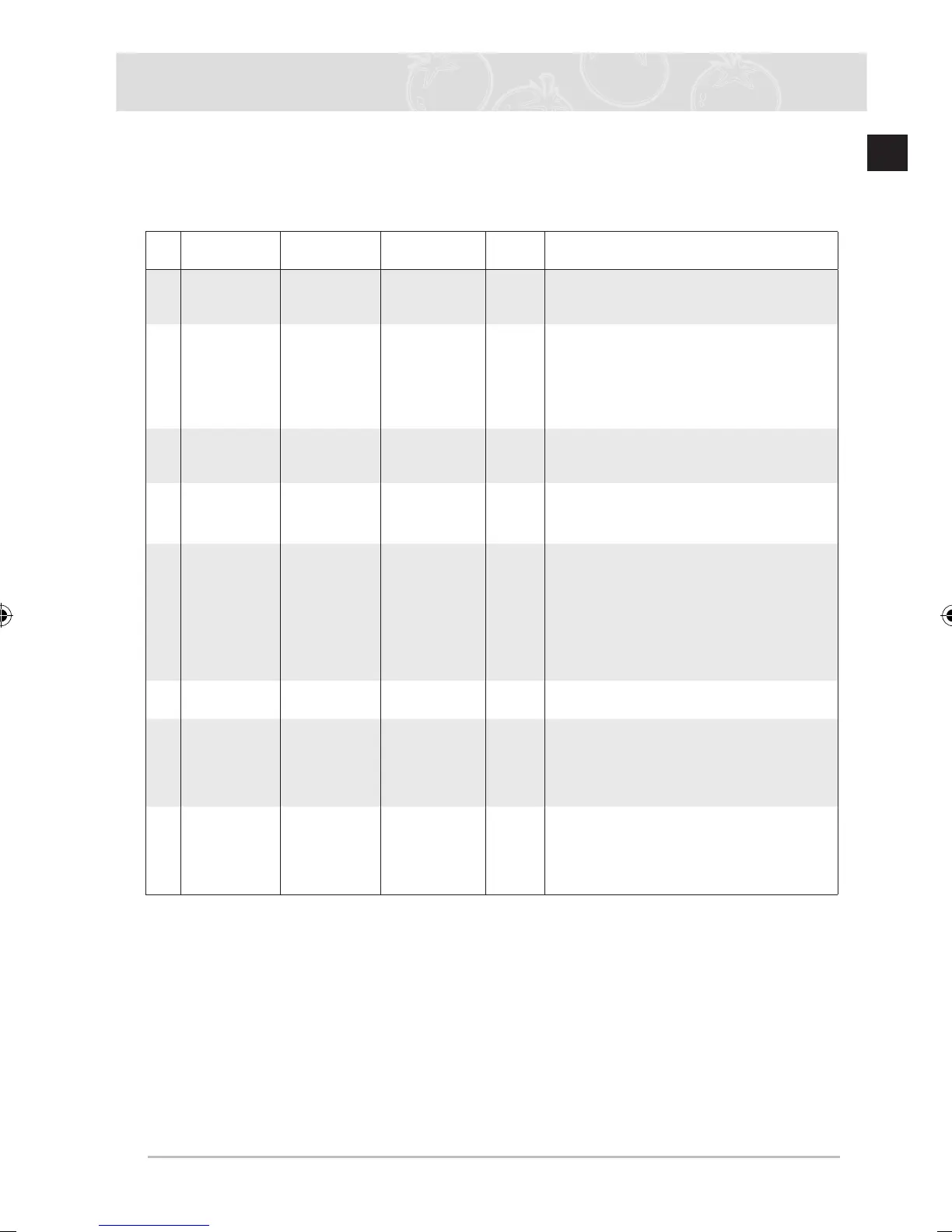 The following table presents 15 Auto Programmes for Cooking, Roasting and Baking.