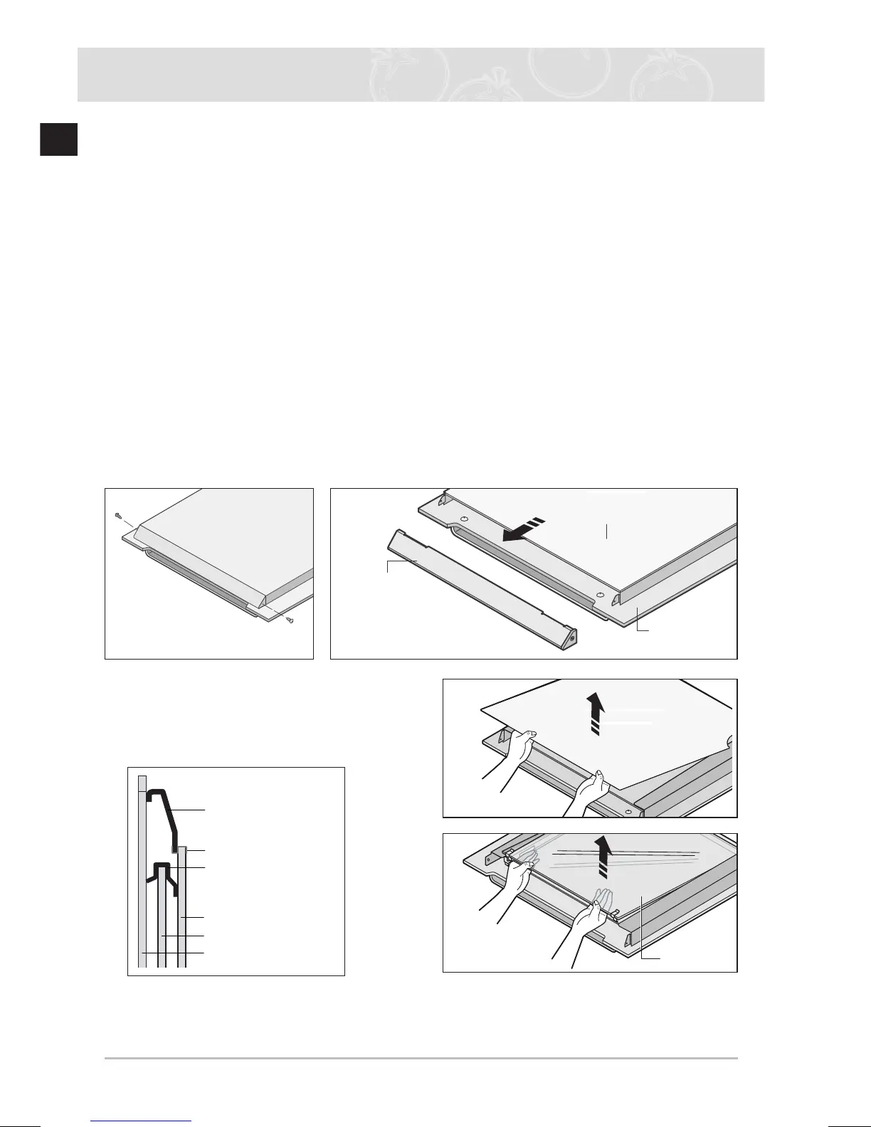 Remove the two supports and the door bracket and remove the two screws attaching the handle.