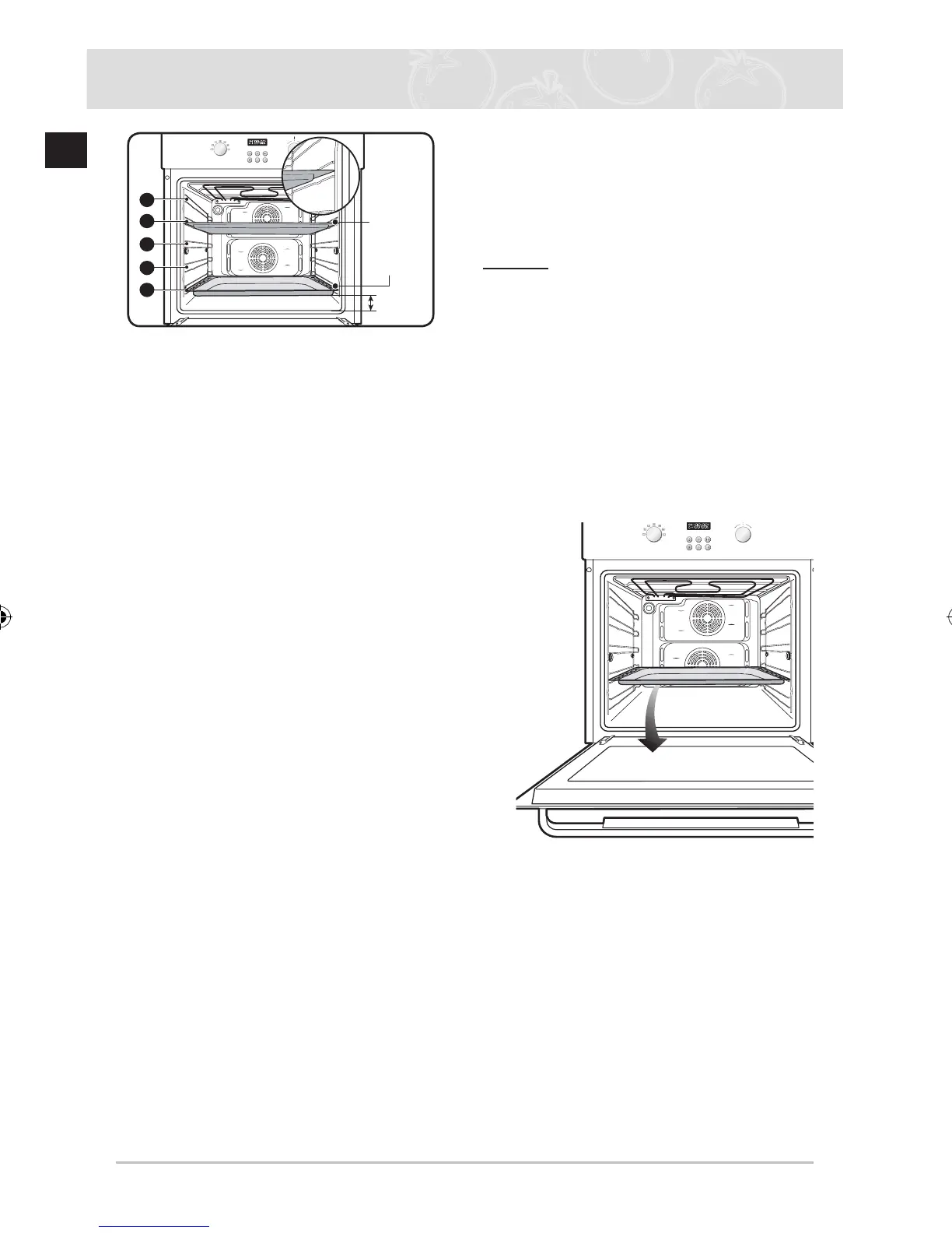 the surface. Trays and pans placed on level 1 should clear the bottom surface of the