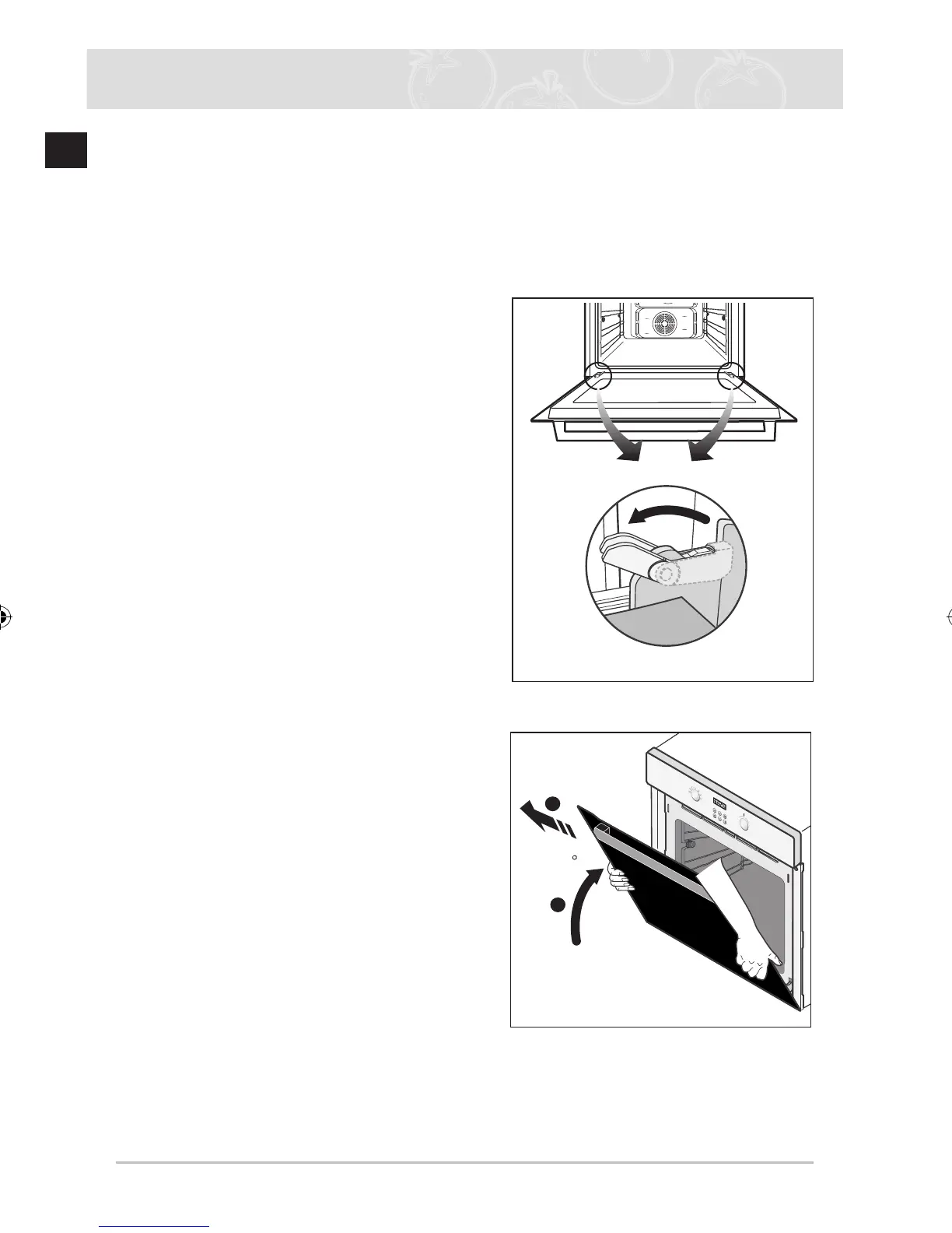 For normal use, the oven door should not be removed but if removal is necessary, for ex-