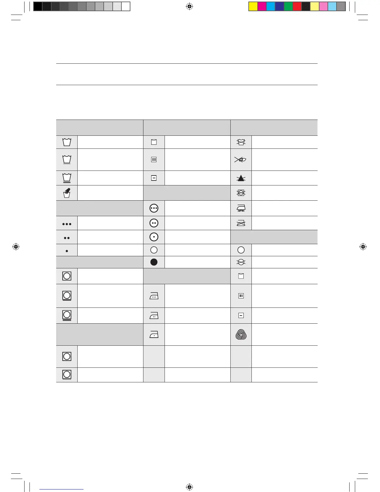 washing, bleaching, drying and ironing, or dry cleaning when necessary. The use of symbols ensures