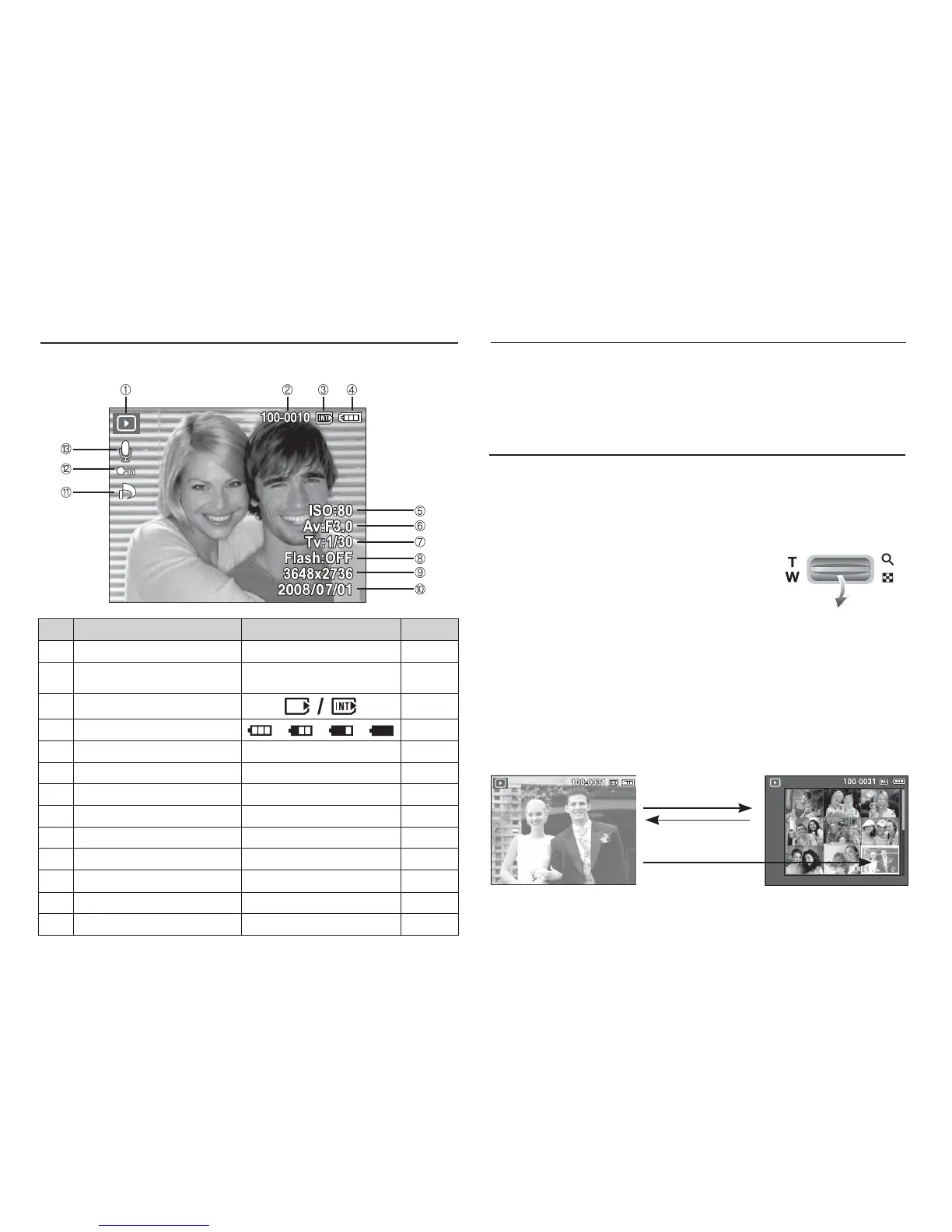 El monitor LCD mostrará la información de disparo de la imagen que aparece.