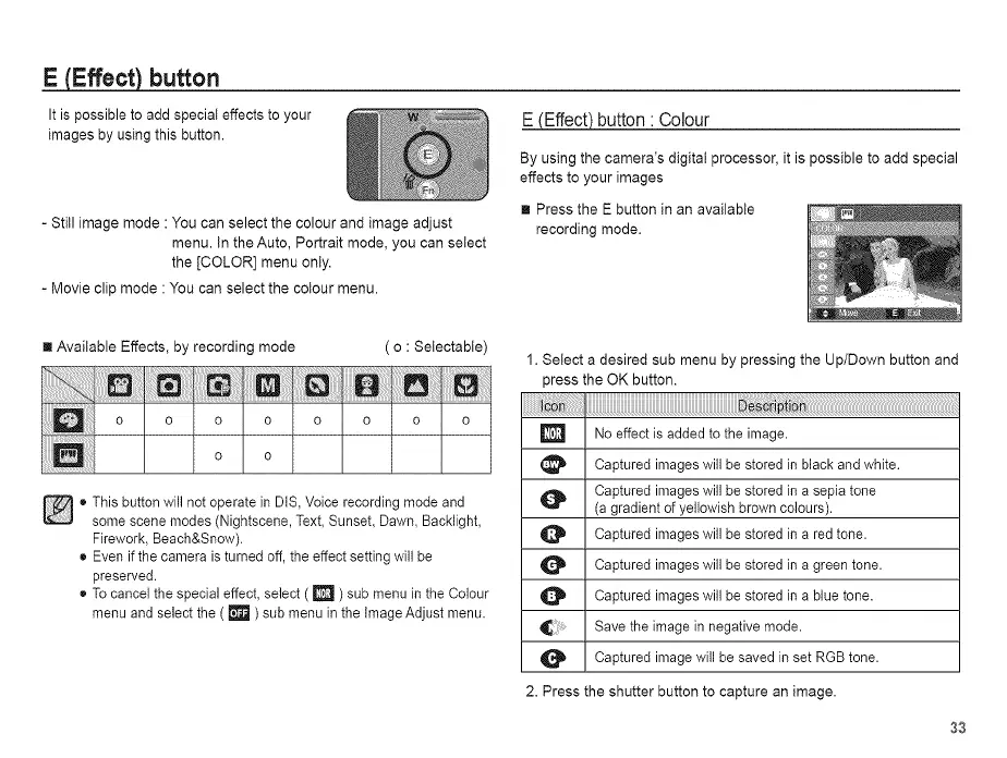 • To cancel the special effect, select ( [] ) sub menu in the Colour