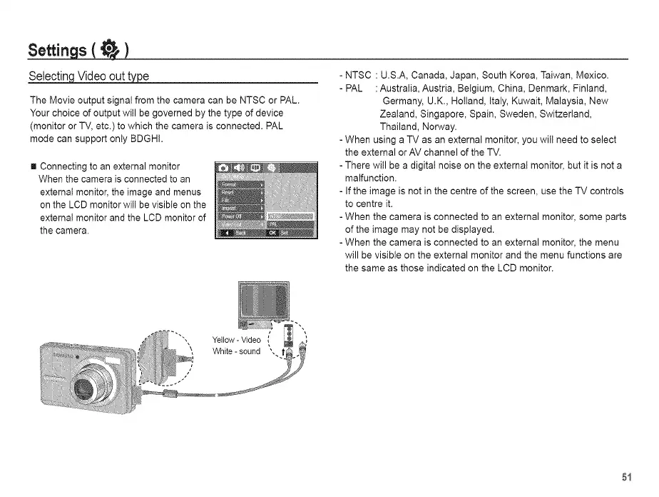 (monitor or TV, etc.) to which the camera is connected. PAL