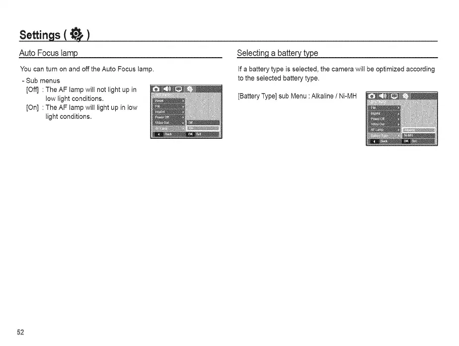 [Battery Type] sub Menu : Alkaline / Ni-MH