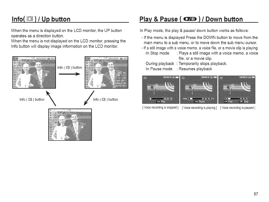 Info button will display image information on the LCD monitor.