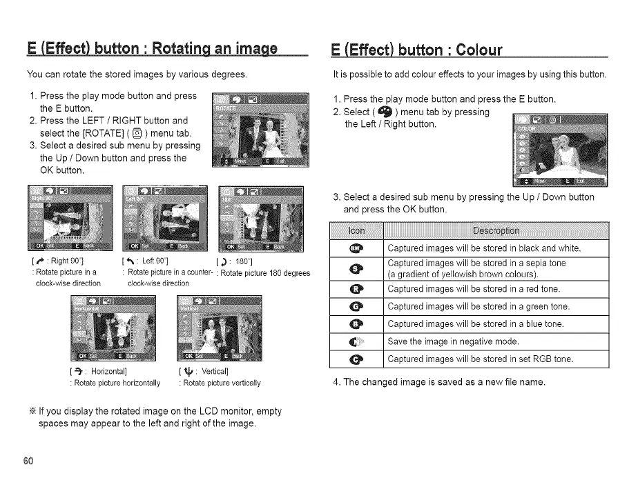 E (Effect) button • Rotating an image