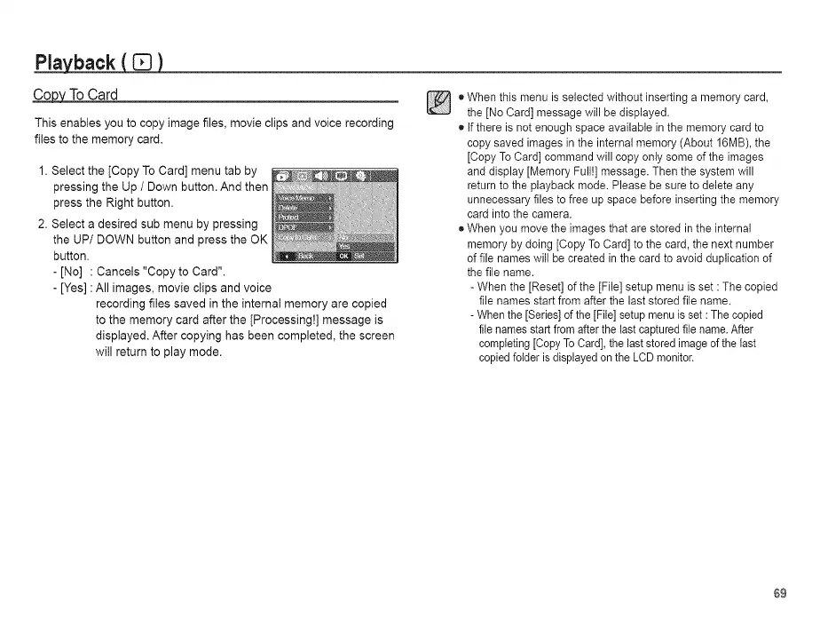 - [No] : Cancels "Copy to Card".