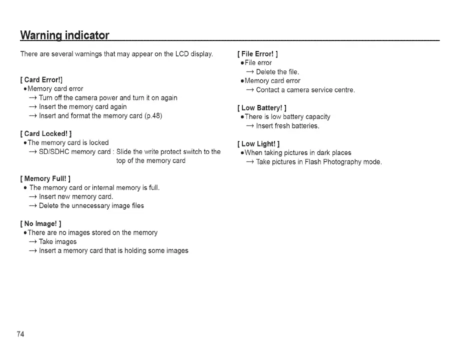 There are several warnings that may appear on the LCD display.