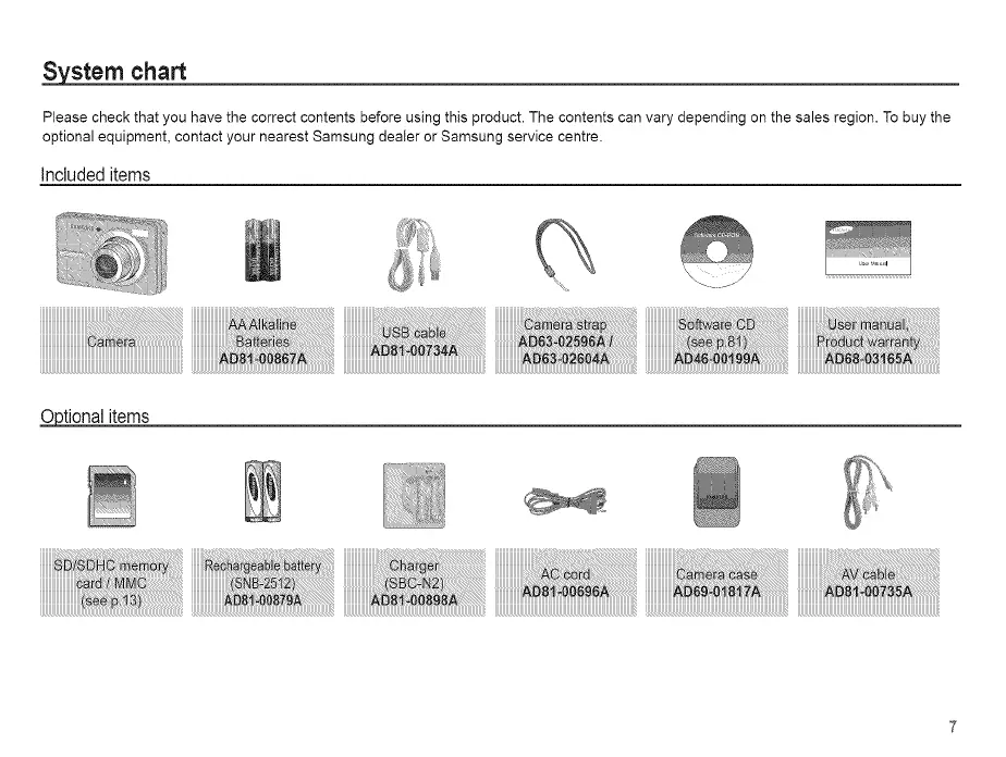 optional equipment, contact your nearest Samsung dealer or Samsung service centre.