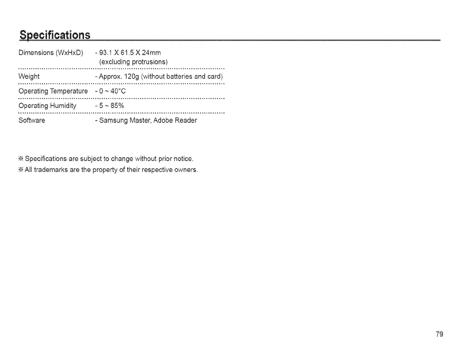 Weight -Approx. 120g (without batteries and card)