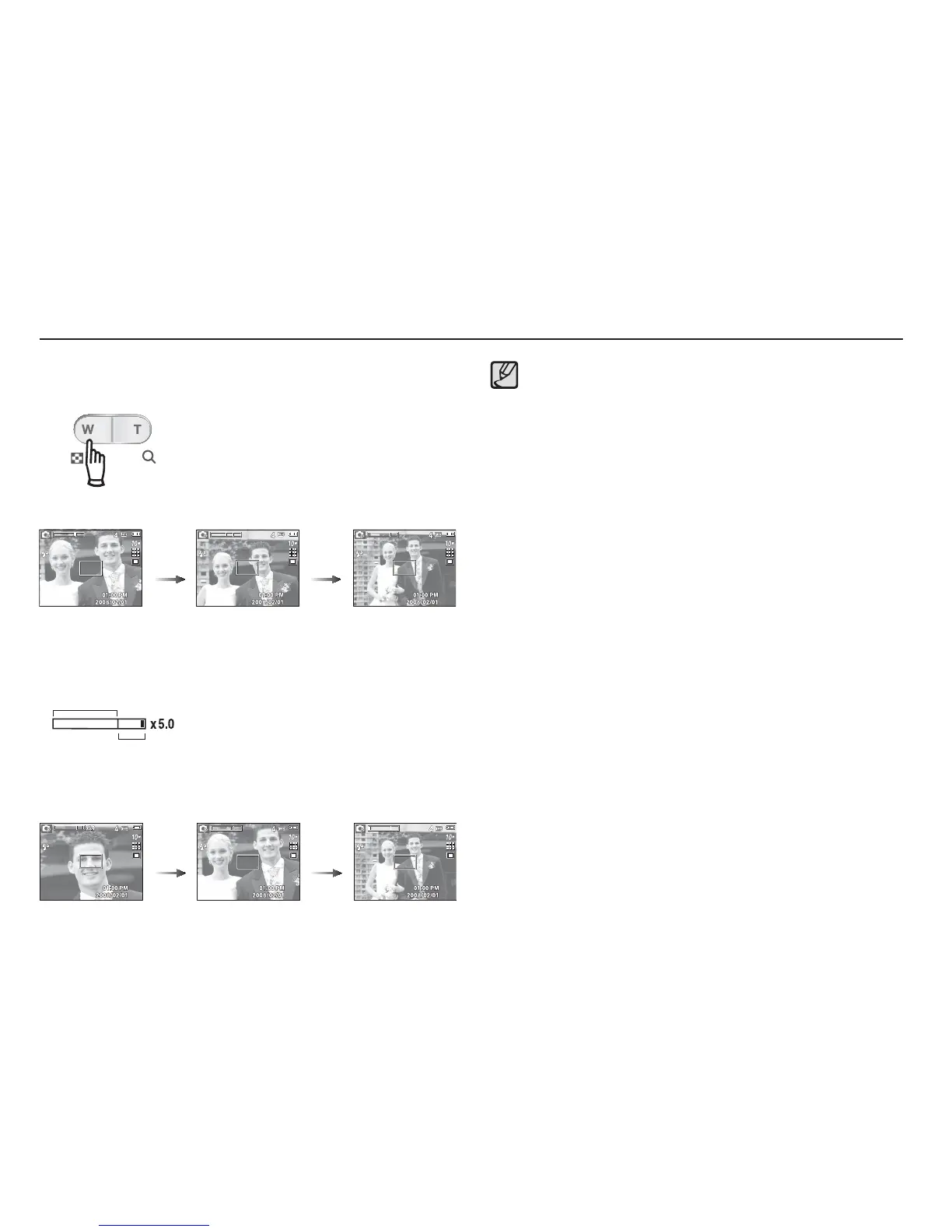 Optical zoom WIDE : Pressing the ZOOM W button. This will