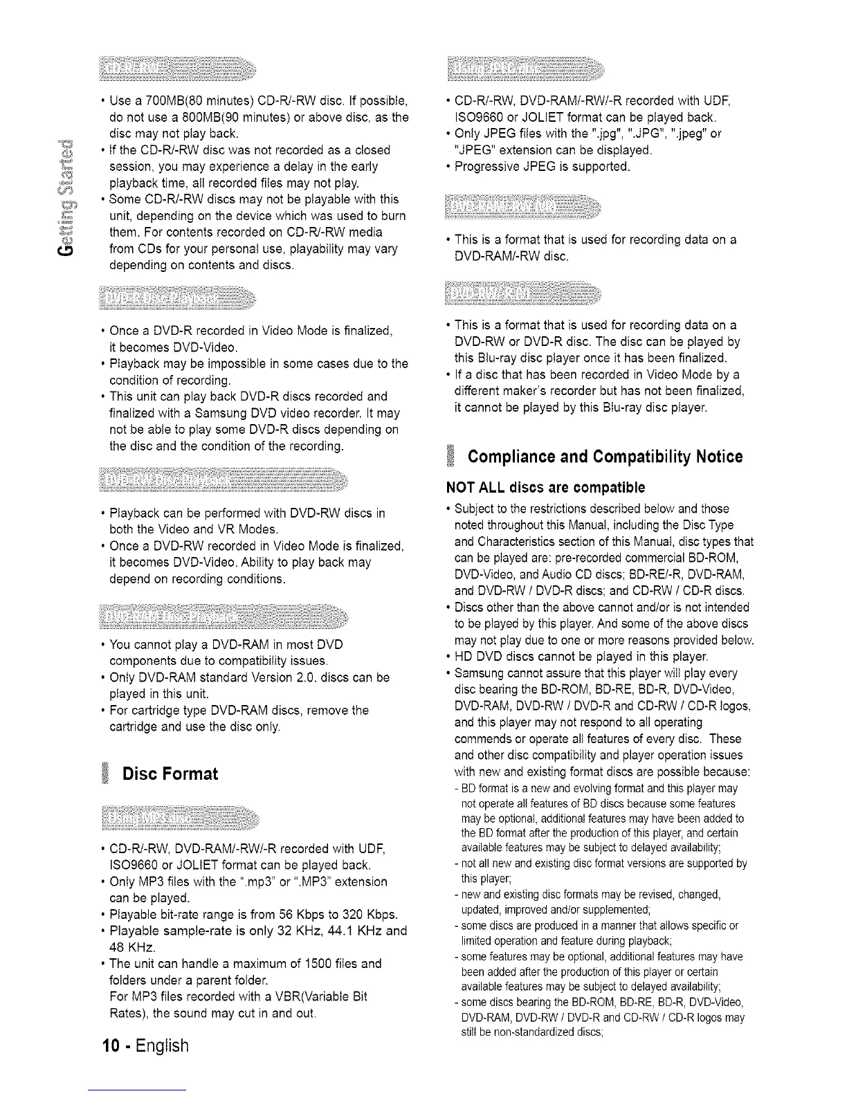 DVD-Video, and Audio CD discs; BD-REt-R, DVD-RAM,