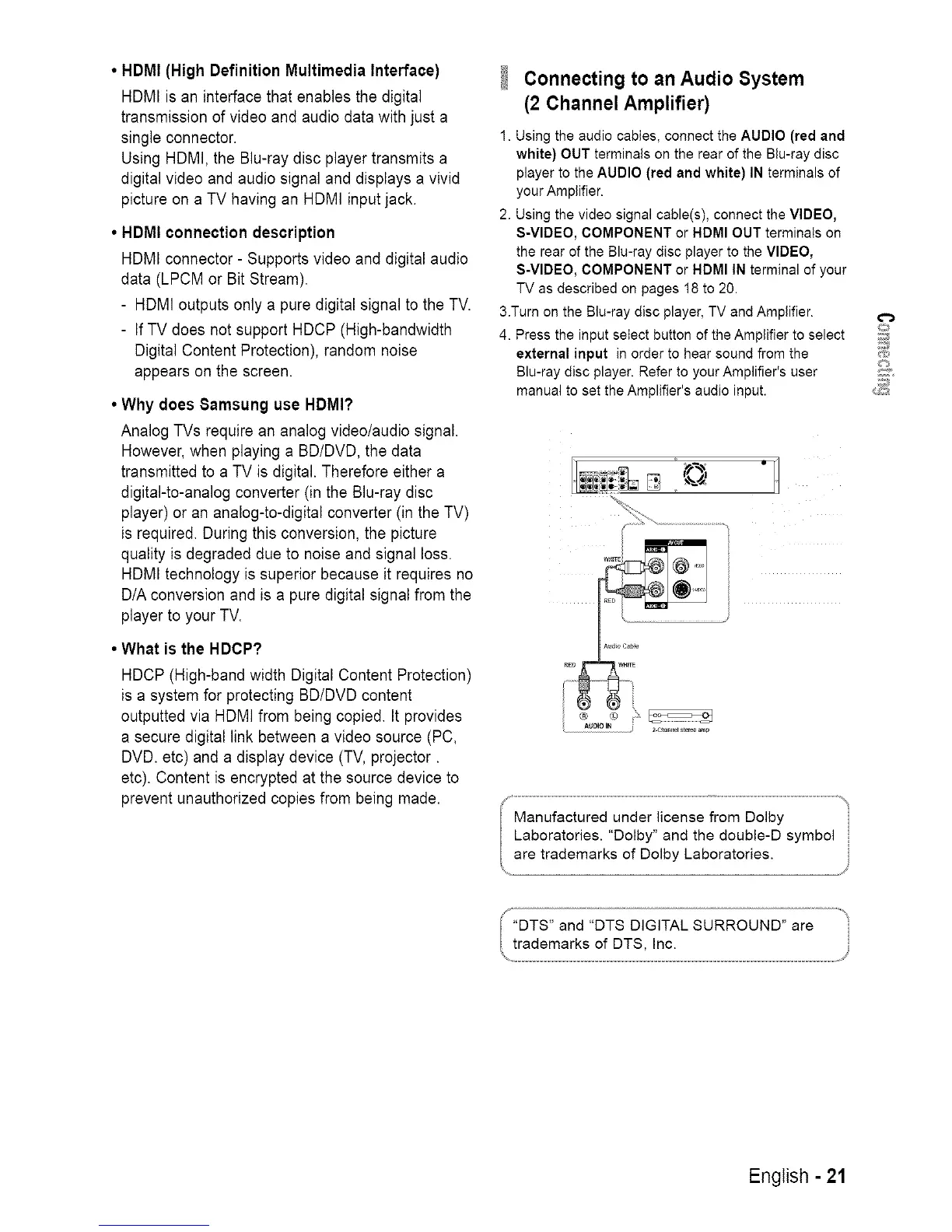 Blu-ray disc player. Refer to your Amplifier's user
