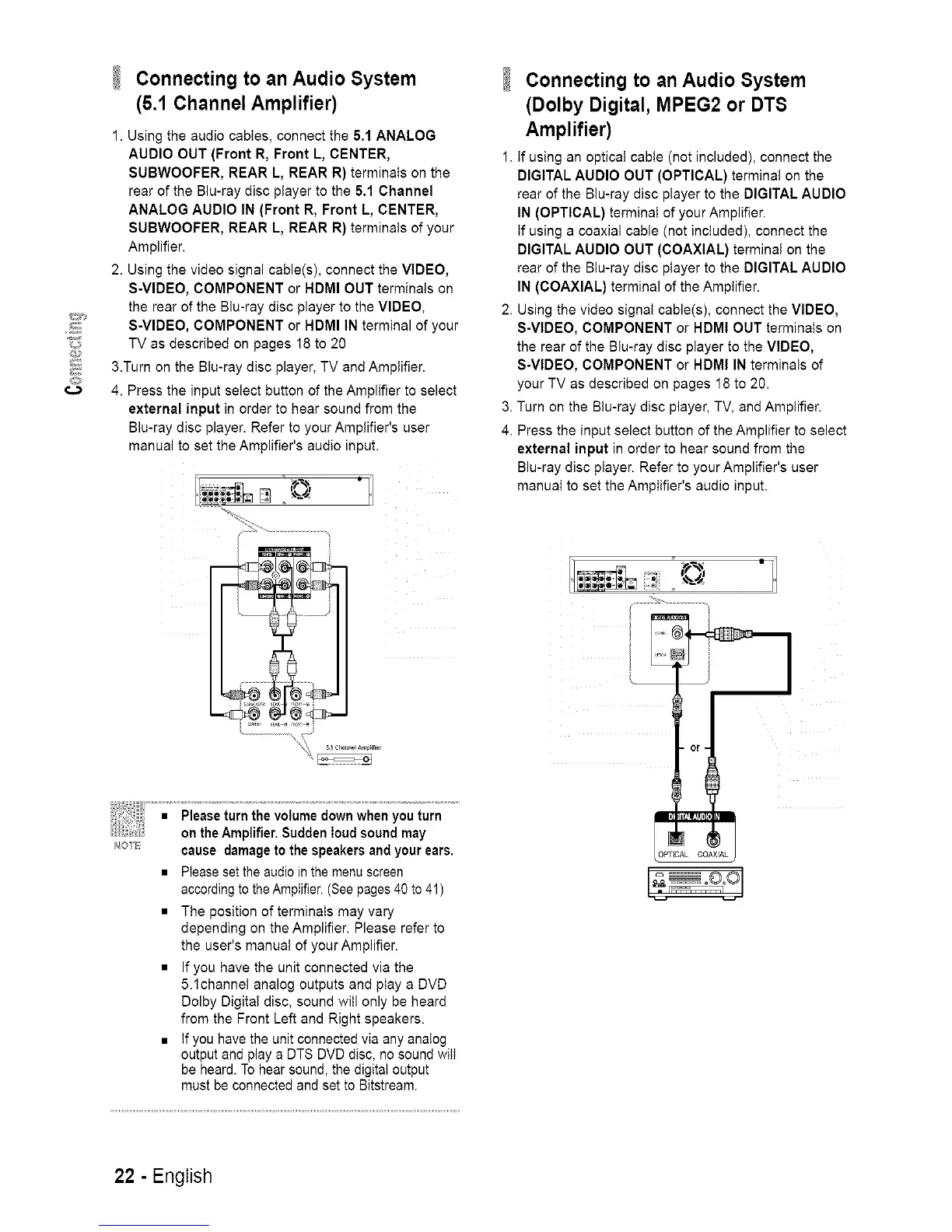 rear of the Blu-ray disc player to the DIGITAL AUDIO
