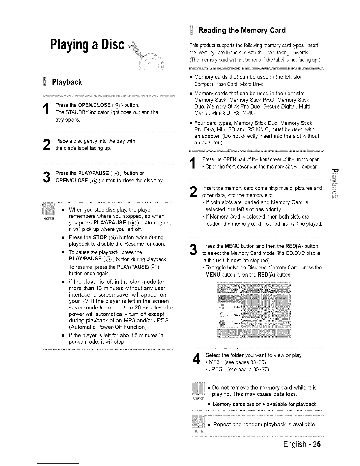 loaded, the memory card inserted first wilt be played.