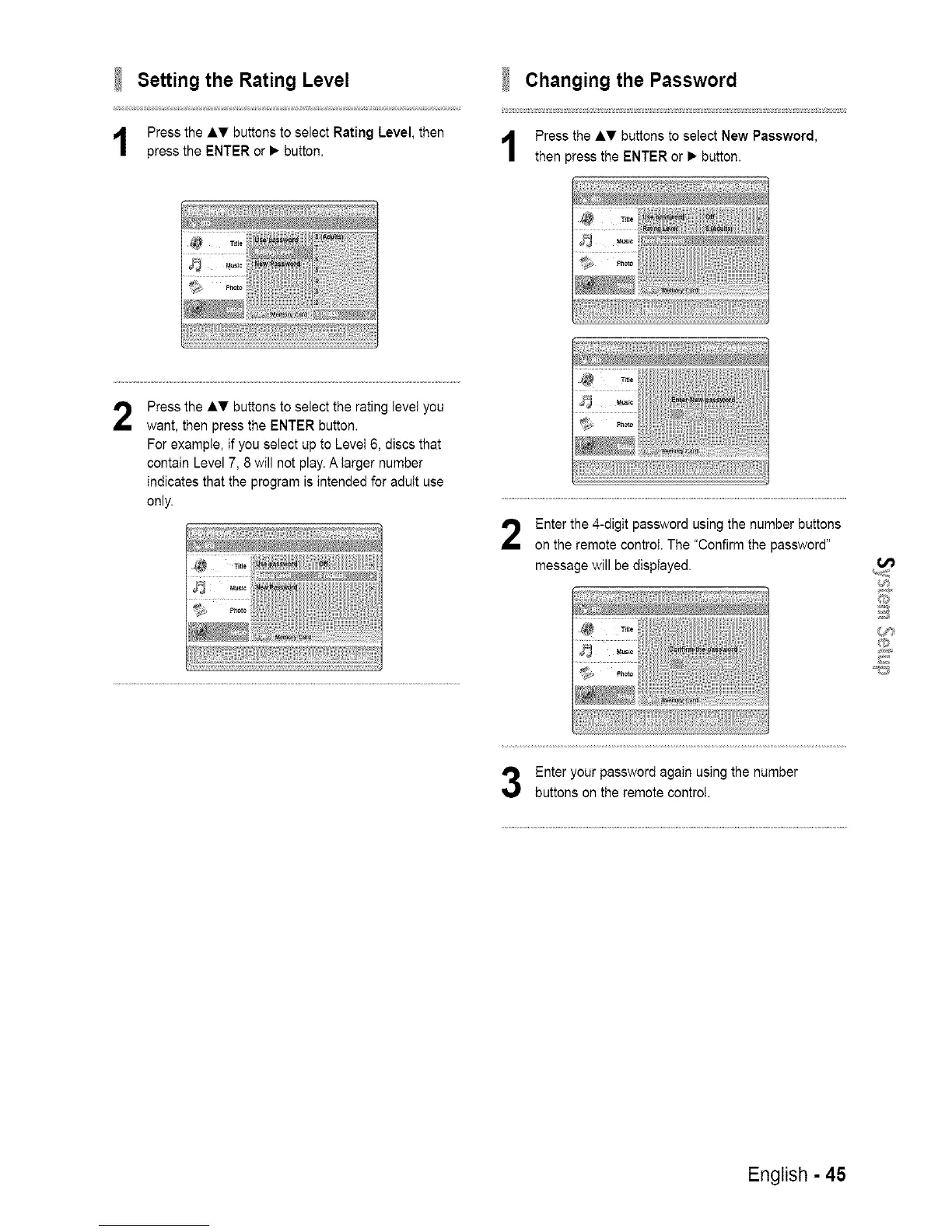 Press the AT buttons to select the rating IeveI you