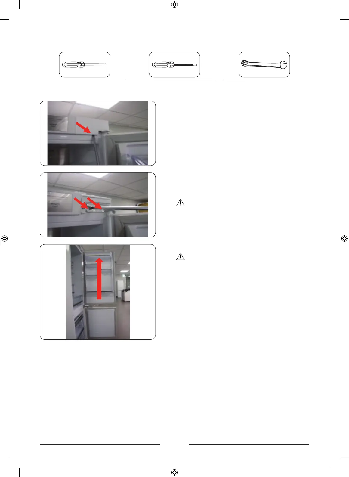 2. Remove the 2 screws in the upper hinge of