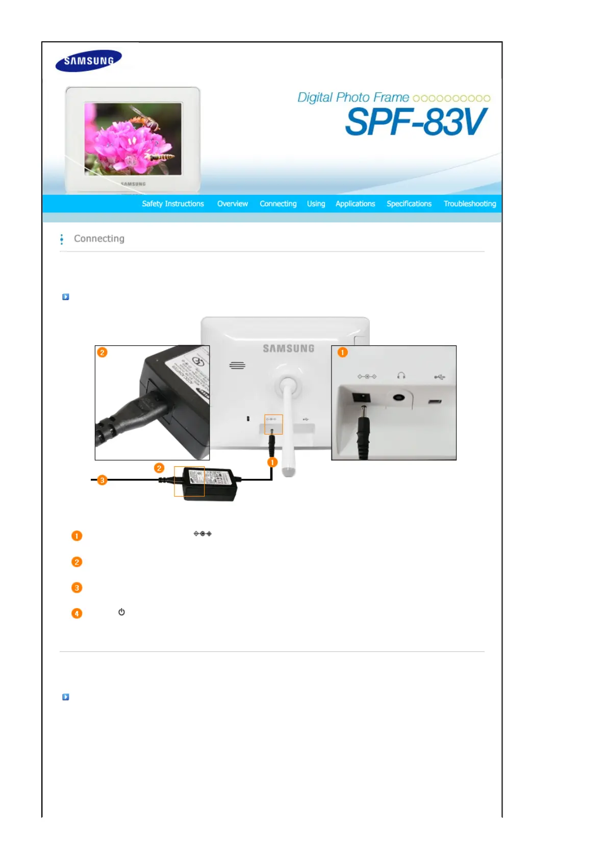 Samsung BT08PS - Connecting; Connecting the Power; Connecting via USB