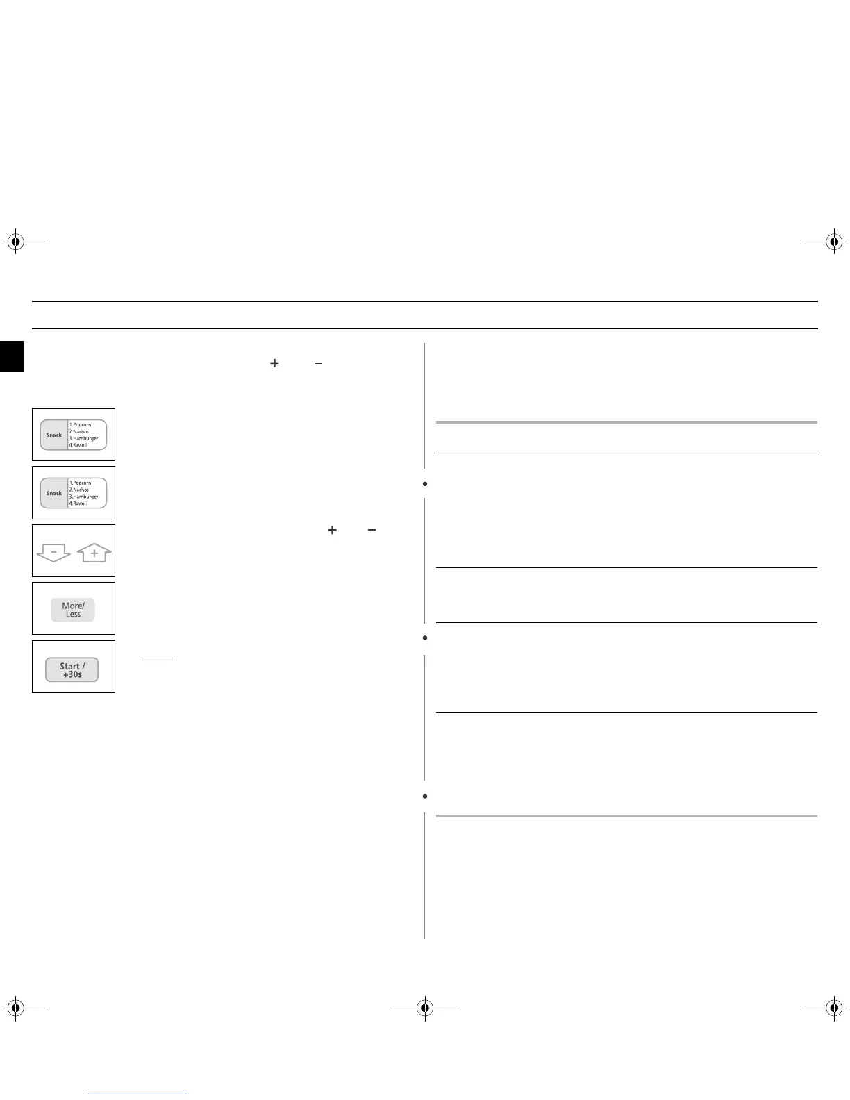 With the Snack feature, the cooking time is set automatically. You can