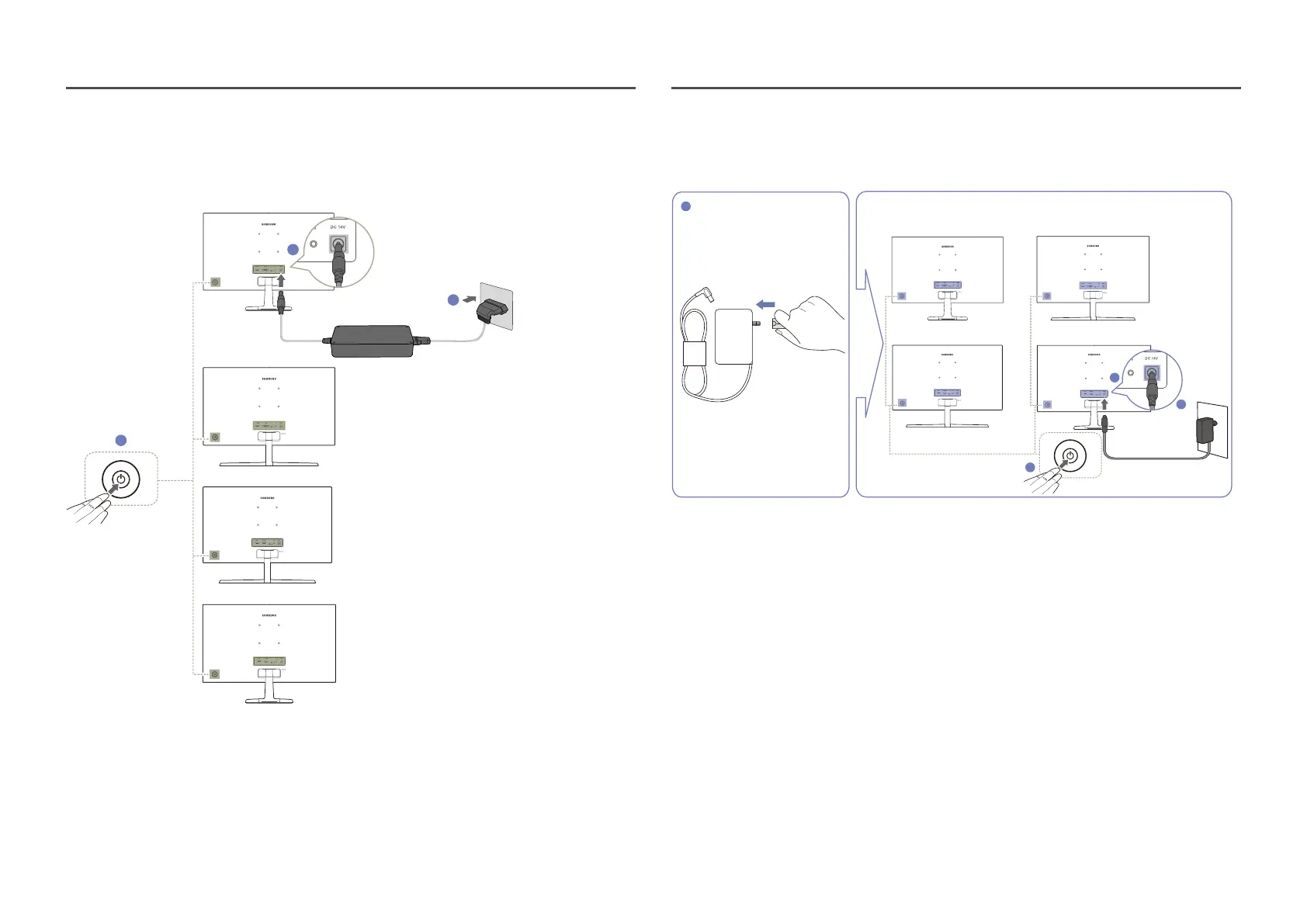 Connect the AC/DC adapter cable to the DC 14V port on the back of the monitor.