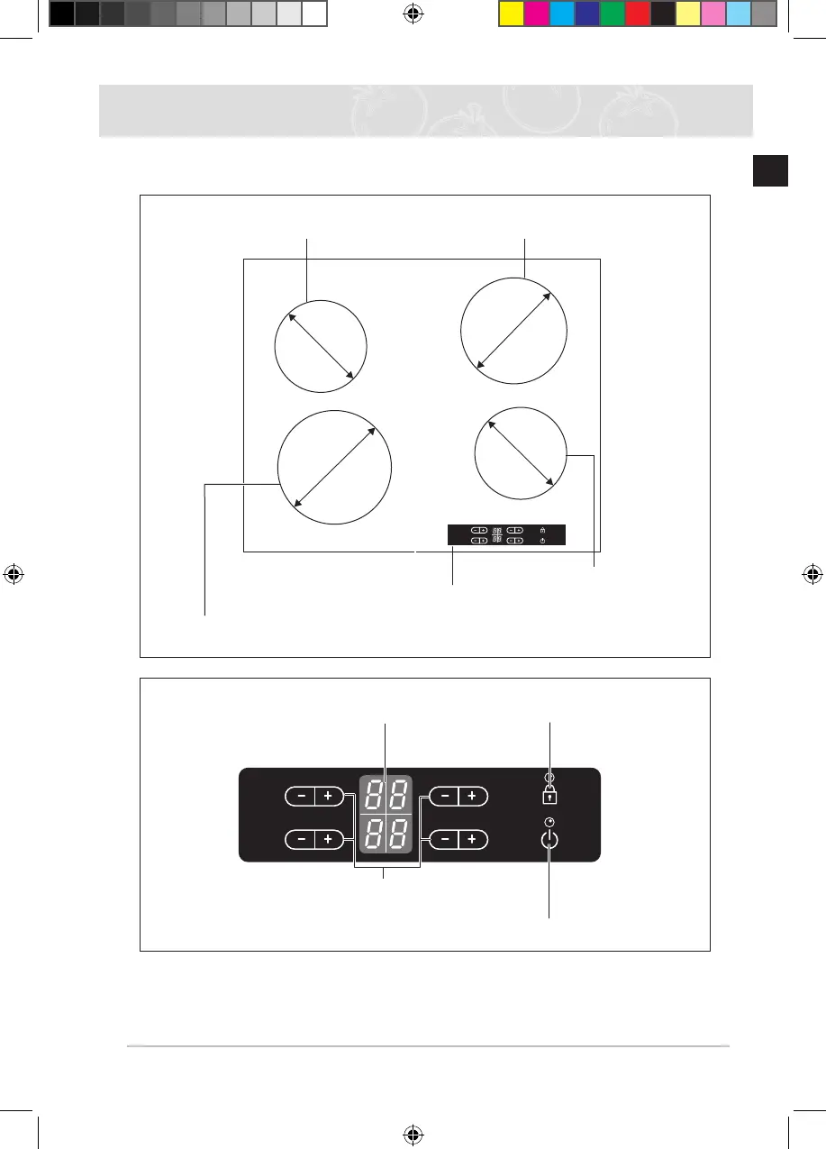 Cooking zones and control panel