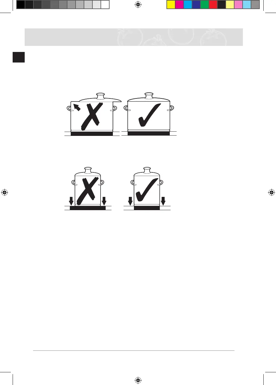 • The base of the pan should be the same size as the cooking zone.