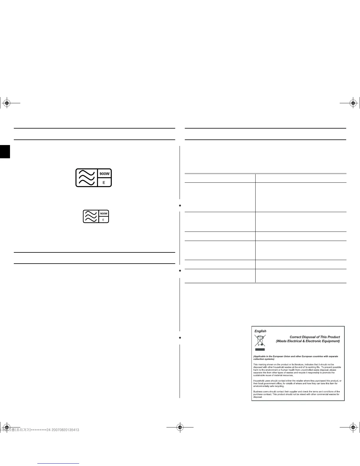 cooking time for the CE1070 / CE1070B / CE1070T / CE1070F (900W).