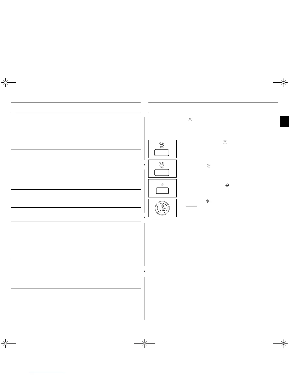 The following table presents Auto Programmes for types of food and