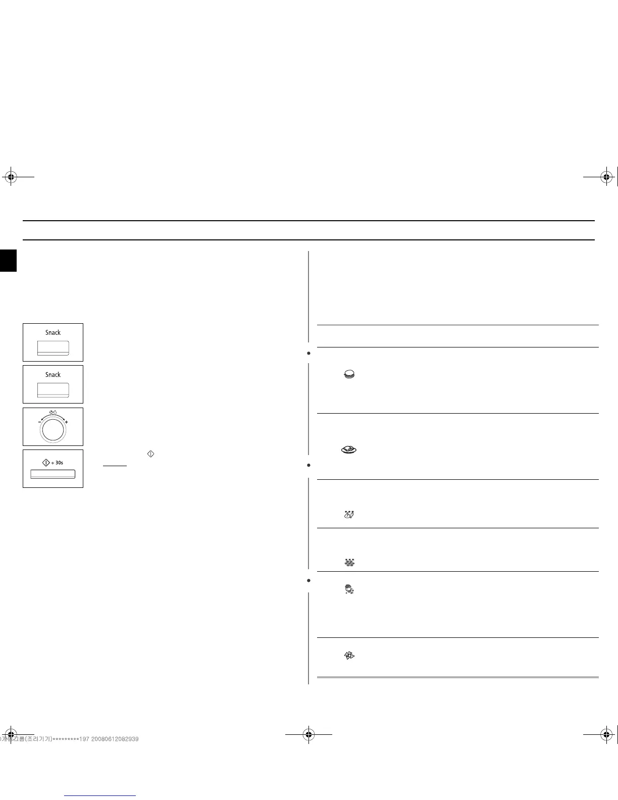 the Snack button. Refer to the table on the following page