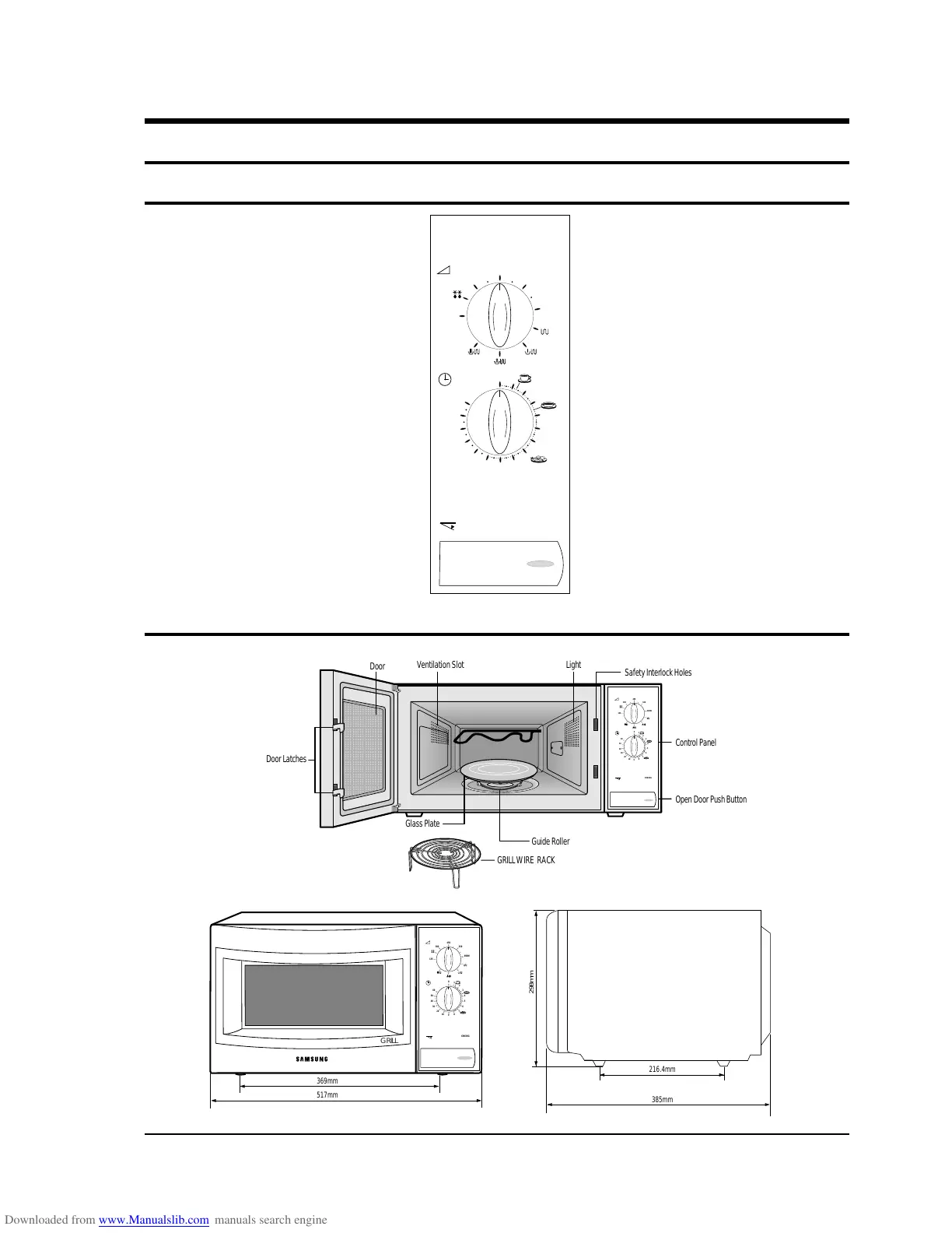 Samsung CE935G - Control Panel; Features & External Views; Operating Instructions