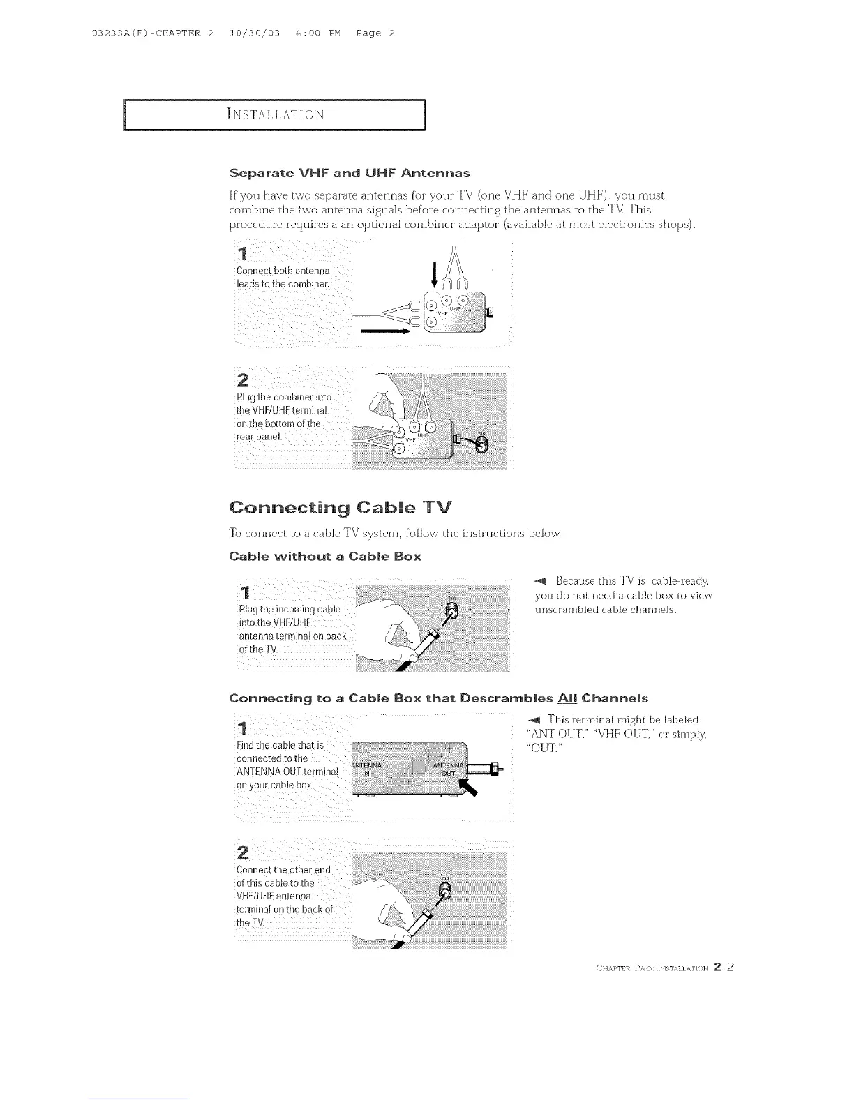 To ( onnect to a (able TV system, f'o]low the in_tHl( tior> below.