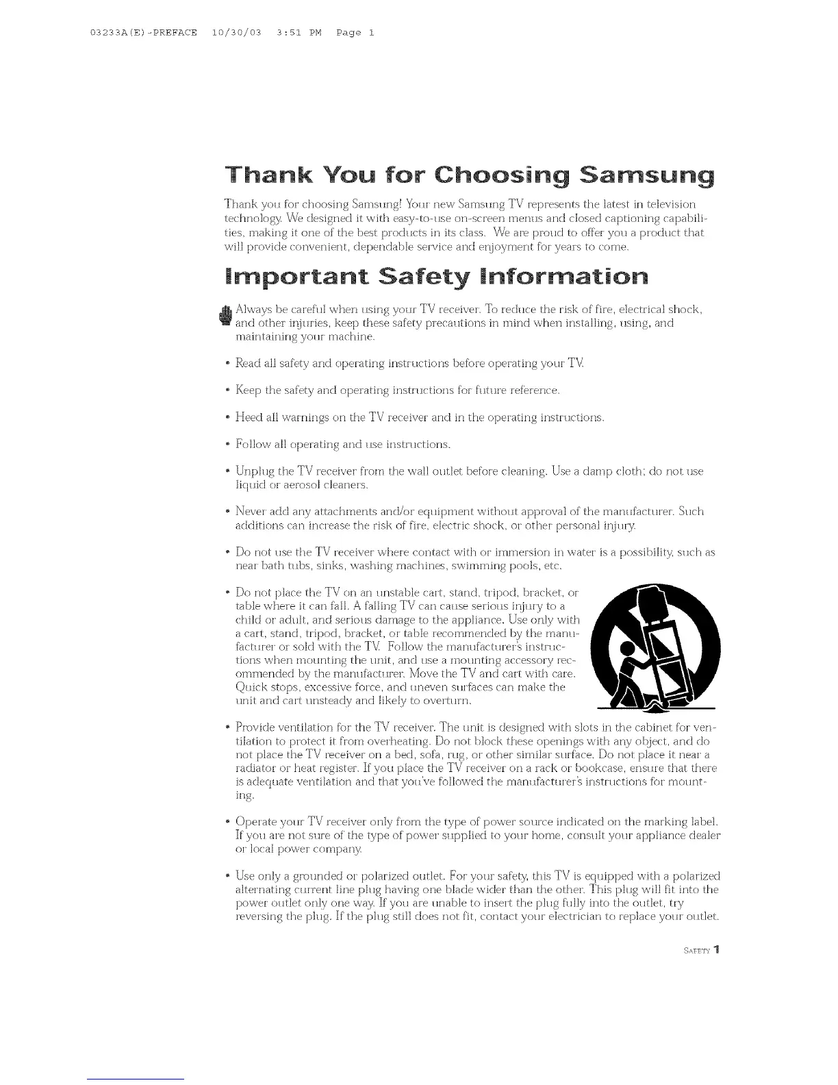 Thank you for choosin 8 Sams_lr]g! "!o_H new Sams_lng TV repIesents the latest in television