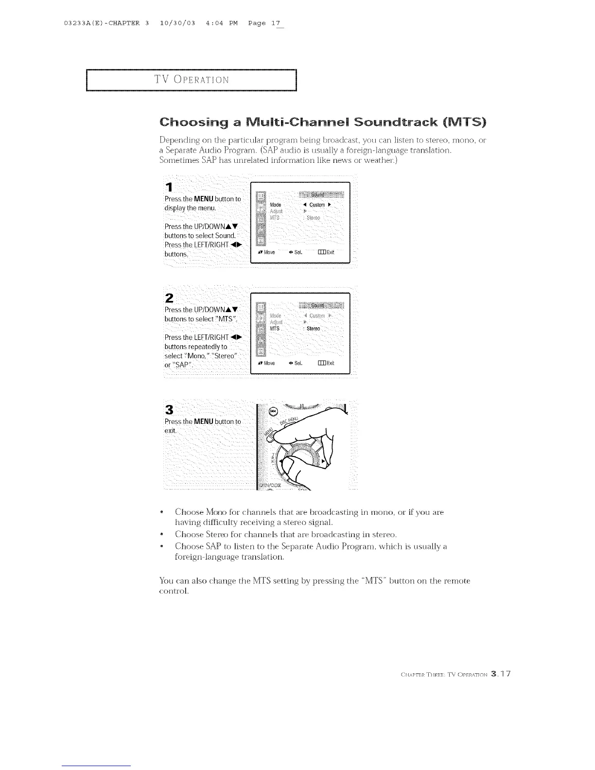 You can also change d_e MTS se_tfng by ]pressfng the ' MTS" t:)_mo_ o_ the remote