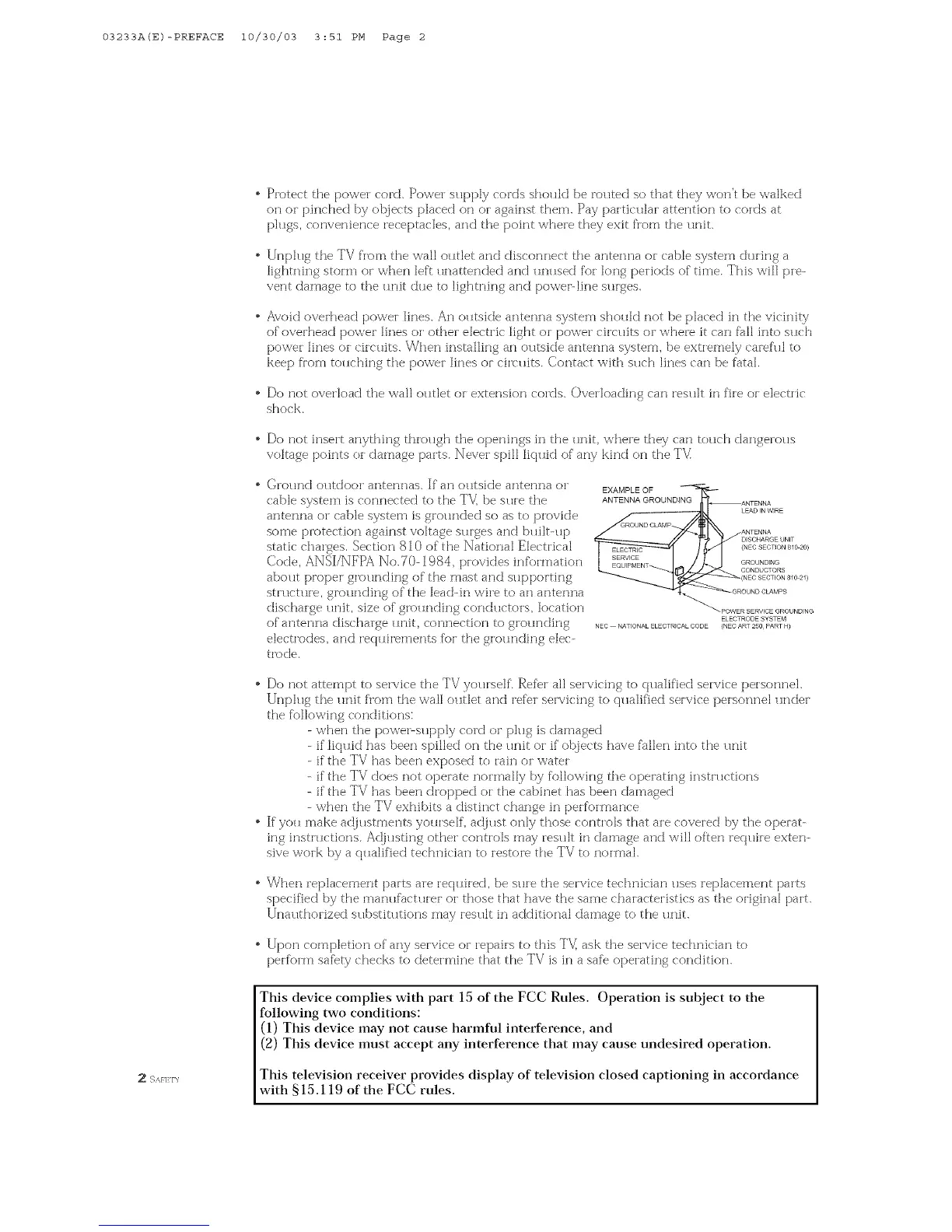 , Do not attempt to sewice the TV yorlrself. Refer all servicing to qualified service personnel.
