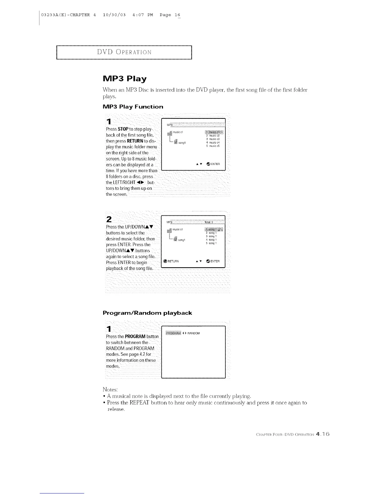 When an MP3 Disc is inserted into the DVD player, the first song file of the first folder