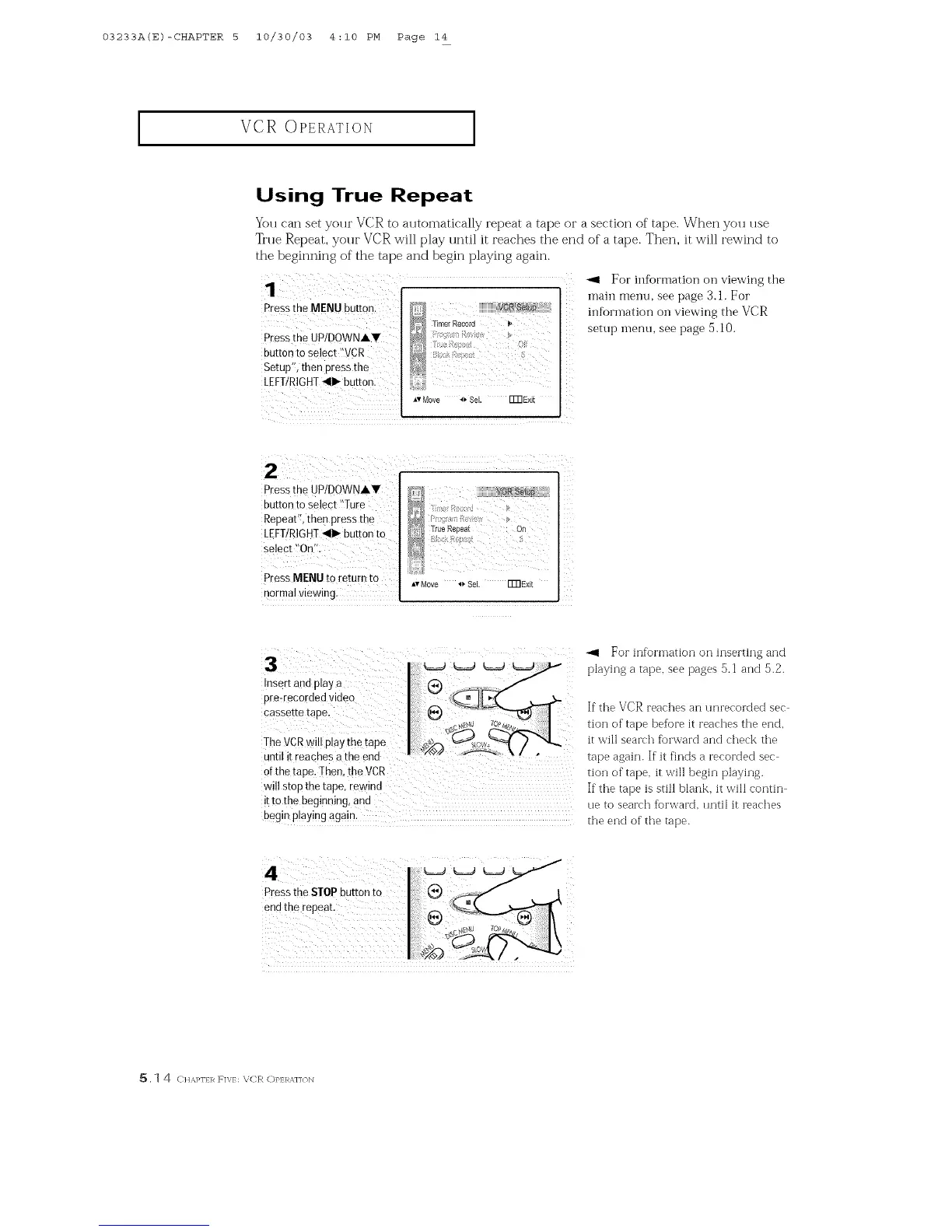 True Repeat, your VCR will play until it reaches the end of a tape. Then, it will rewind to