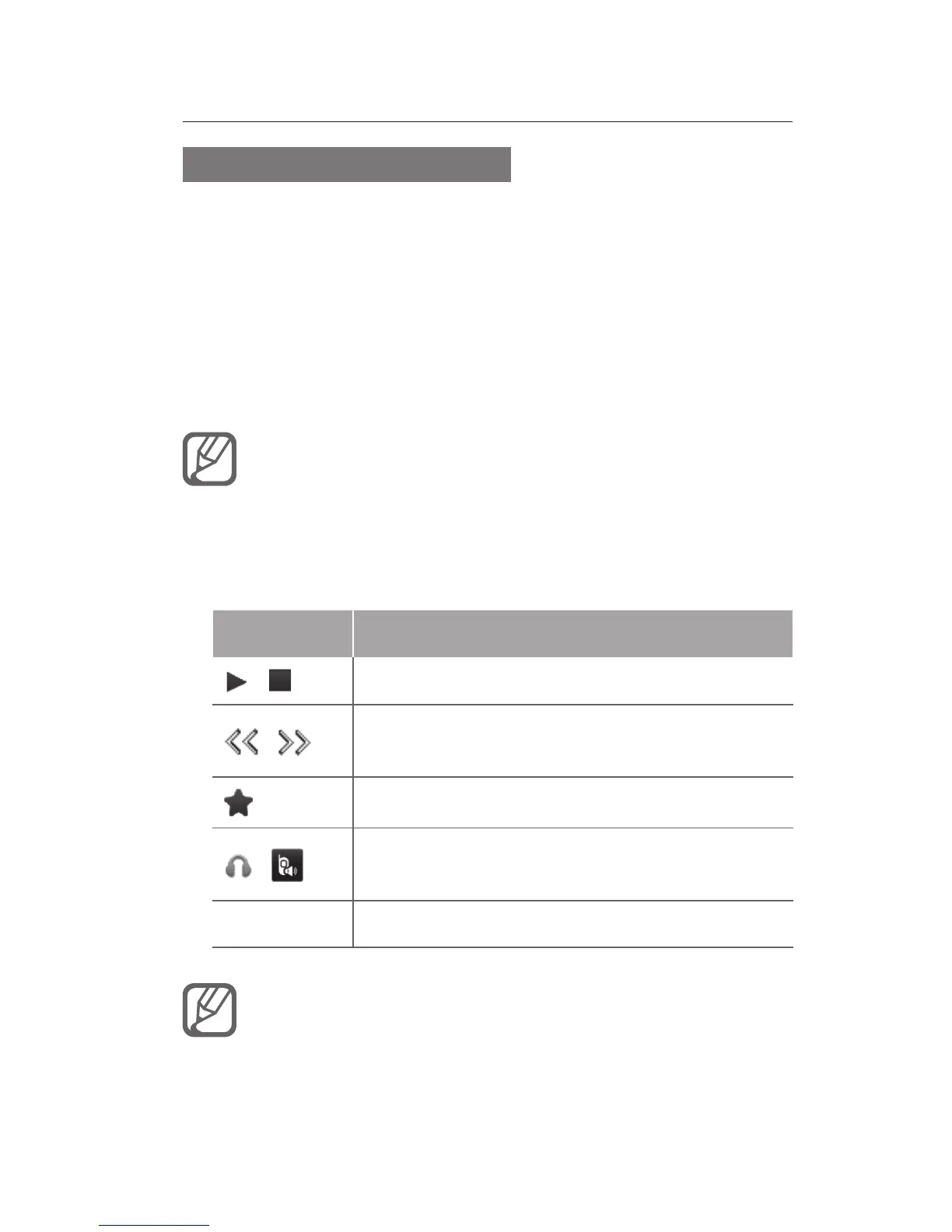 Control the FM radio using the following icons 4.