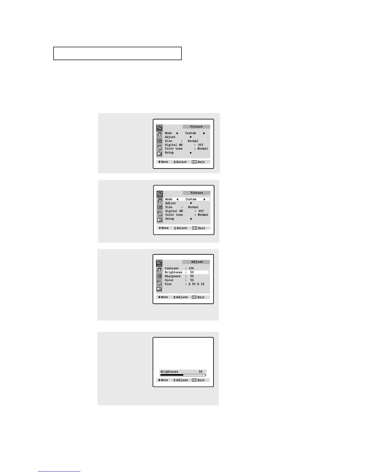 You can use the on-screen menus to change the contrast, brightness, tint, color, and