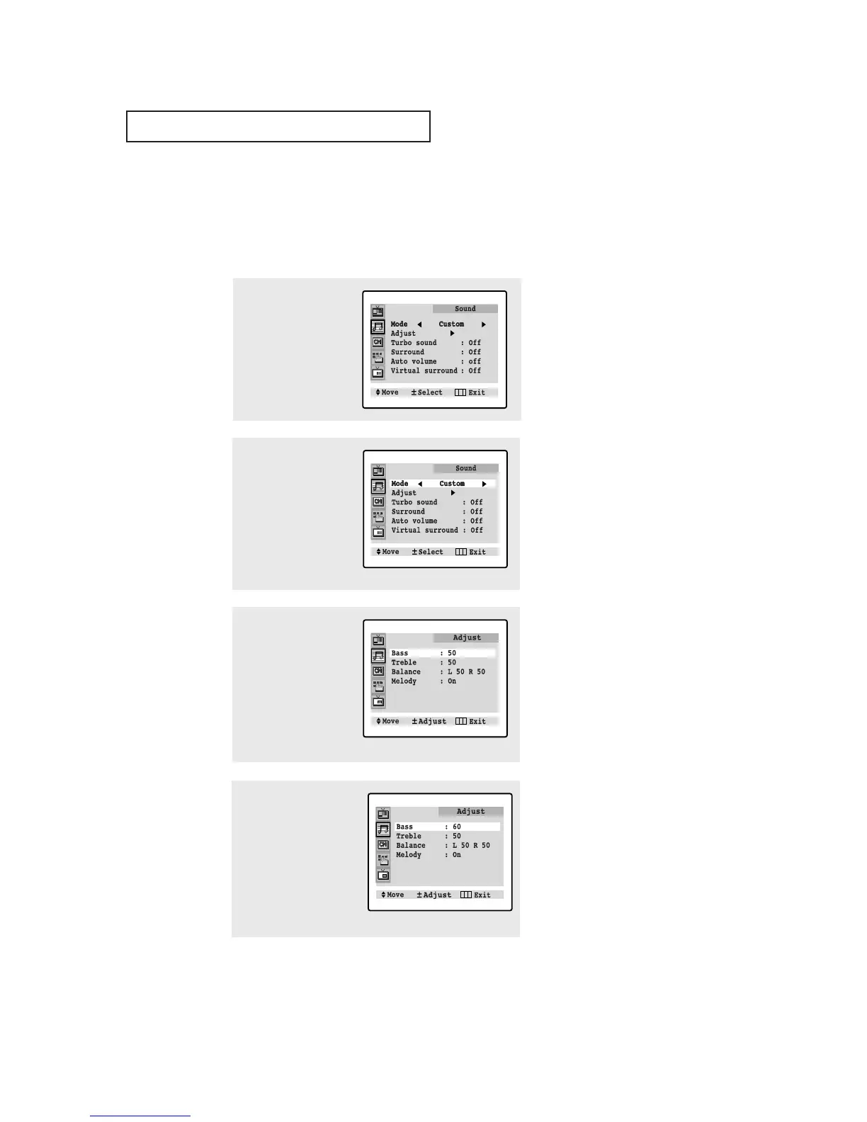 You can use the on-screen menus to adjust the bass, treble, and balance according to