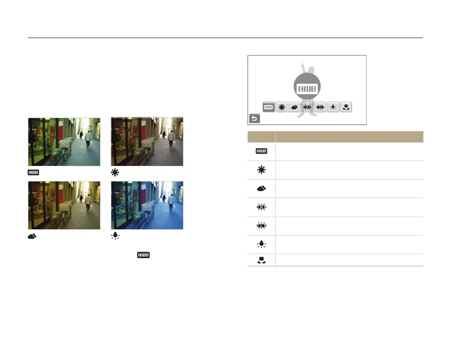 Cloudy: Select when taking outdoor photos on a
