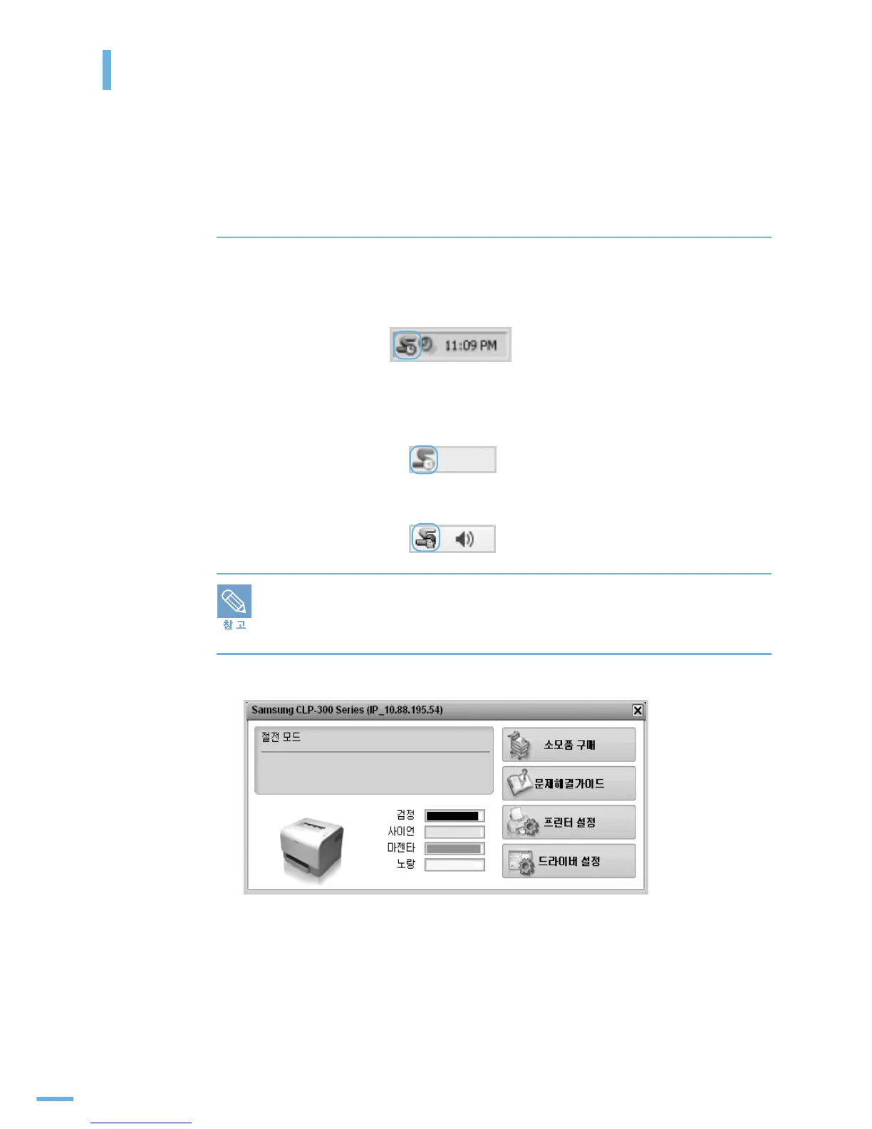 또는 < 시작 > → < 프로그램 > 또는 < 모든 프로그램 > → <Samsung CLP-300 Series> →