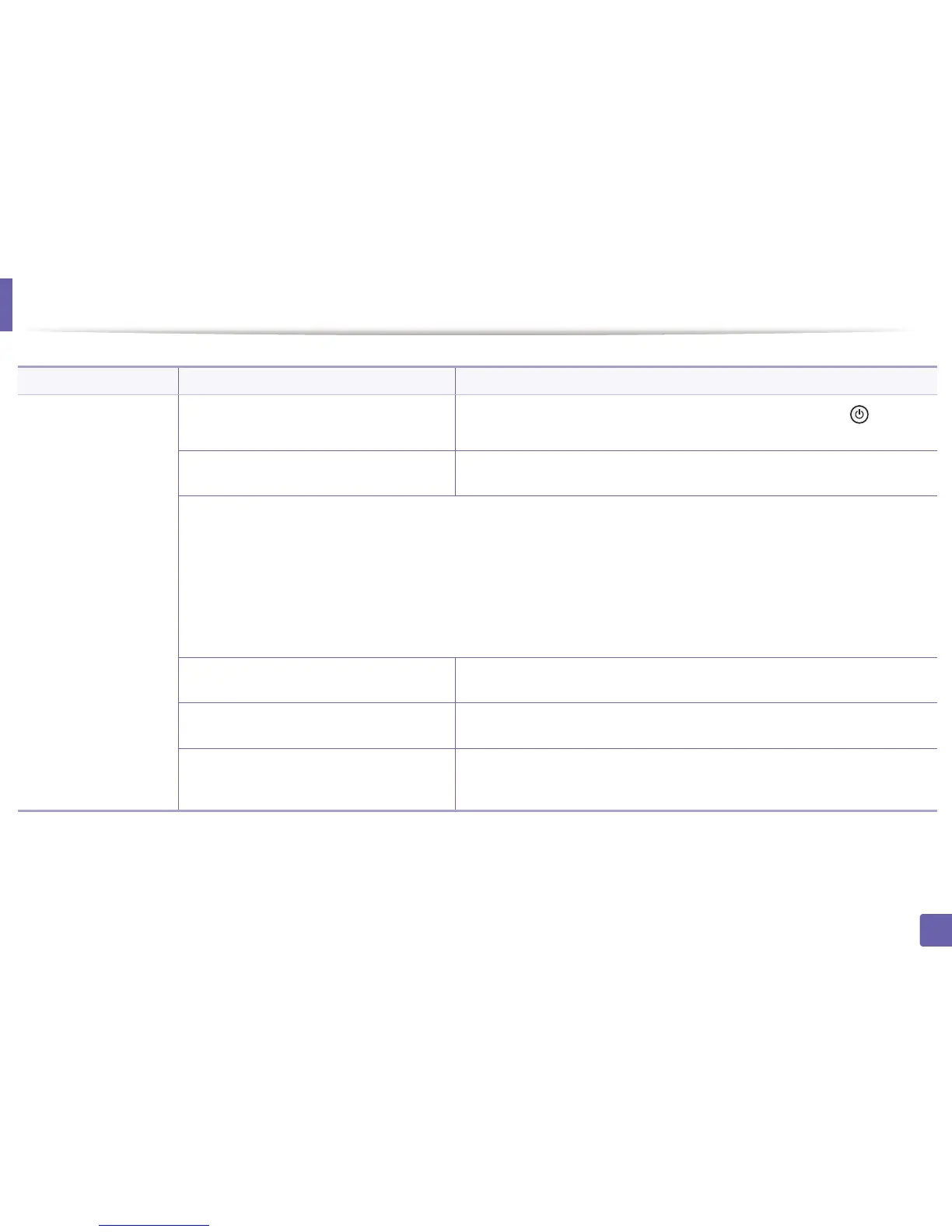 Condition Possible cause Suggested solutions
