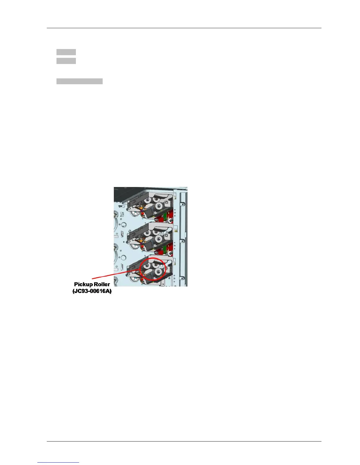 4)Checkifthepickup/reverse/forwardrollerarecontaminatedorwornout.Replacetheserollers(JC93–00616A).