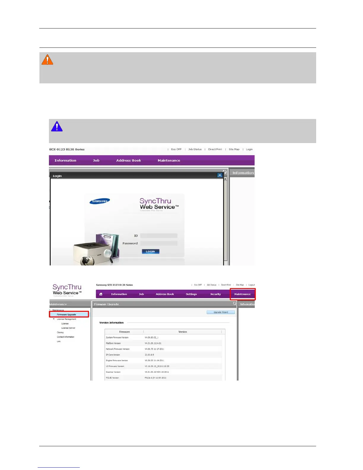 1)GototheSyncThruWebService(SWS)mainhomepage.Click[Login]toaccessasdefaultadministratorasshown