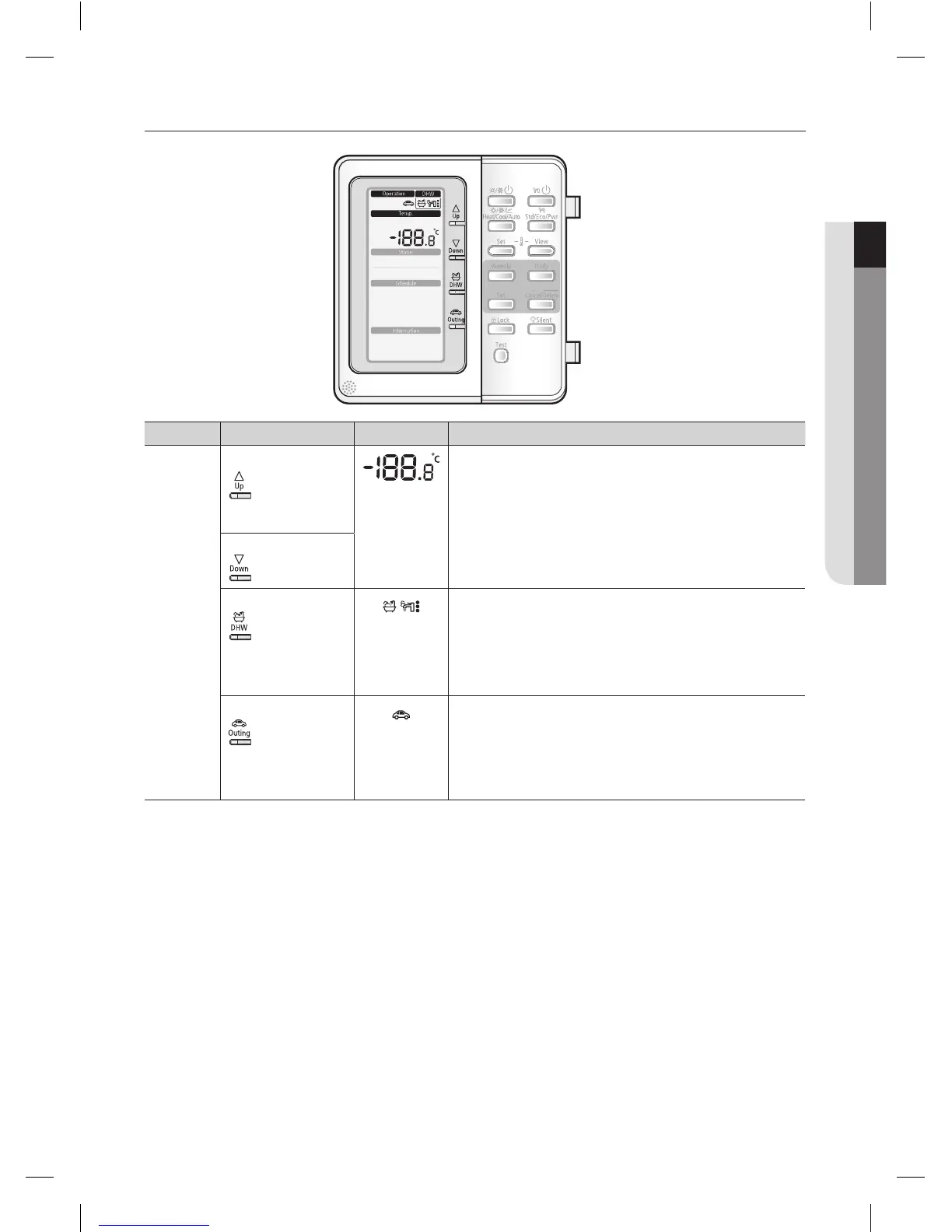 To adjust set point temperature, press arrows up or