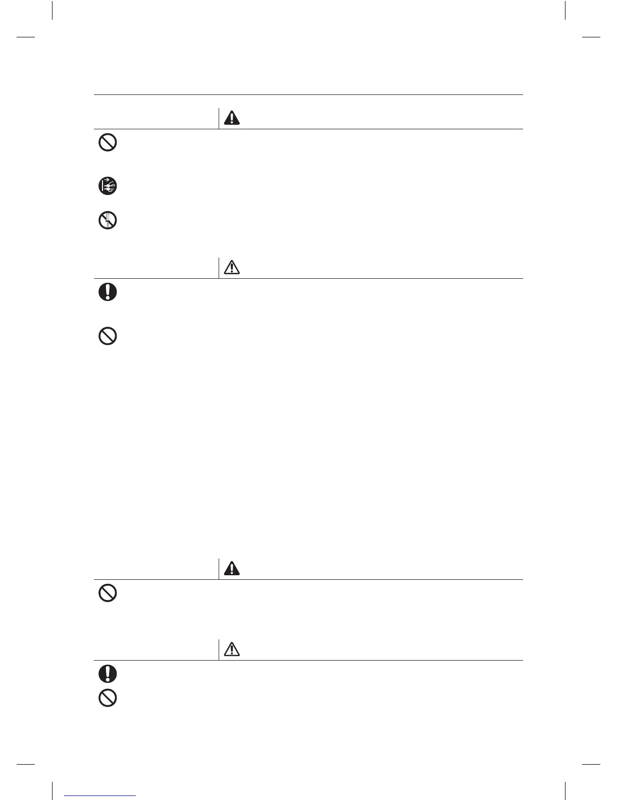 • This may result in discoloration, deformation, damage, electric shock or fire.