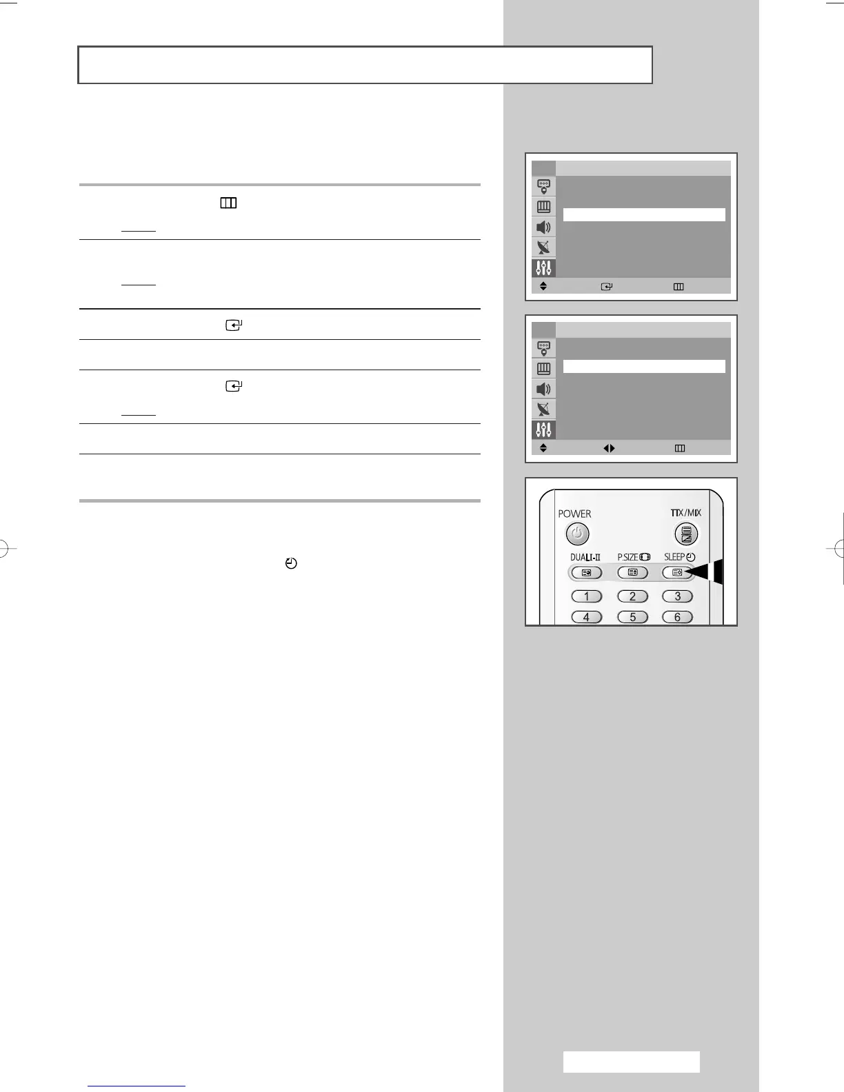 6 Press the ▲ or ▼ button to select Sleep Timer.