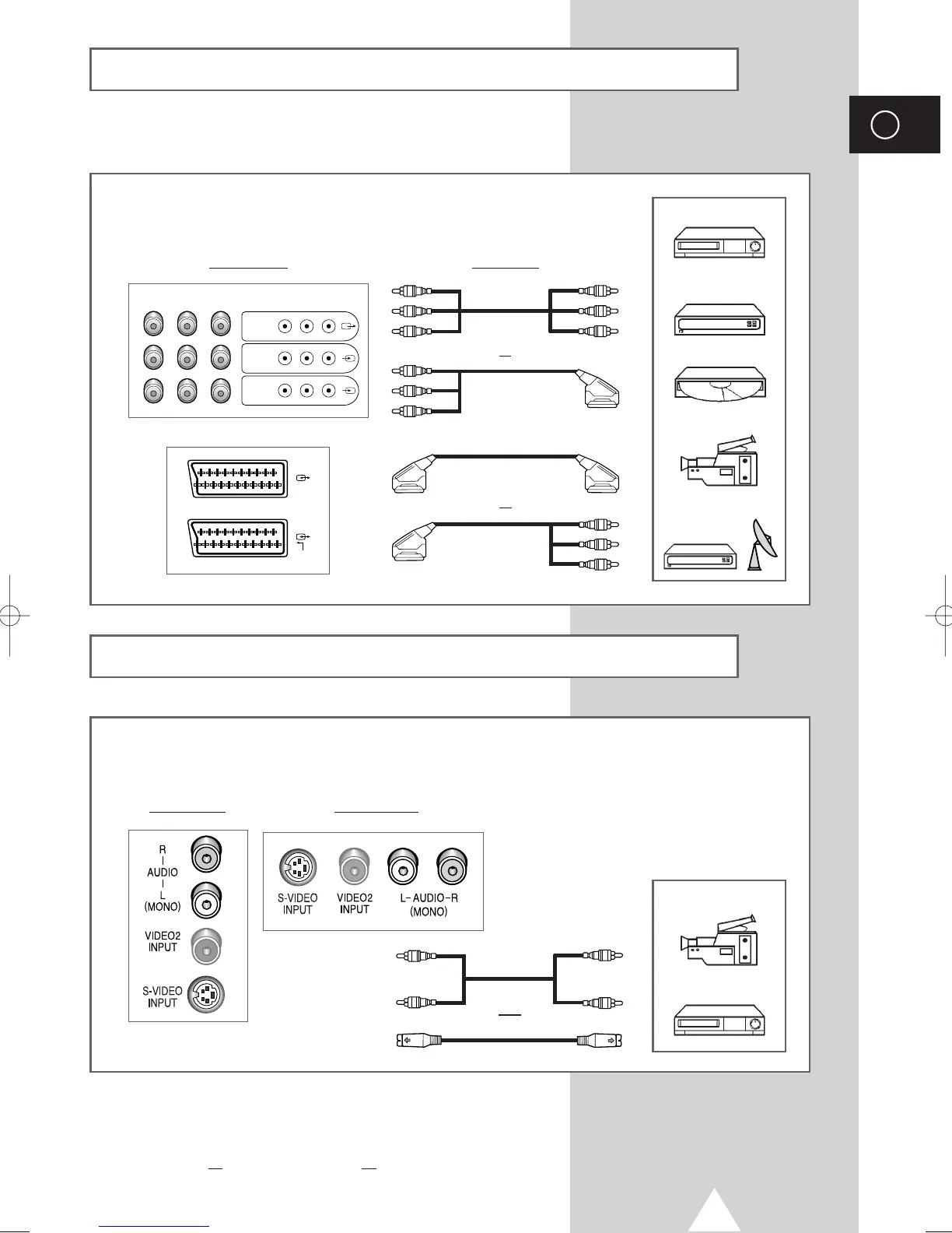 The S-VIDEO/RCA (AUDIO-L and R) connectors are used for equipment